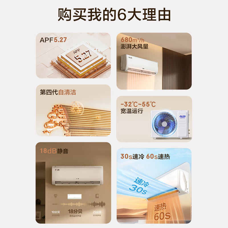 奥克斯空调1.5匹一级能效变频冷暖空调挂机官方旗舰正品省电侠
