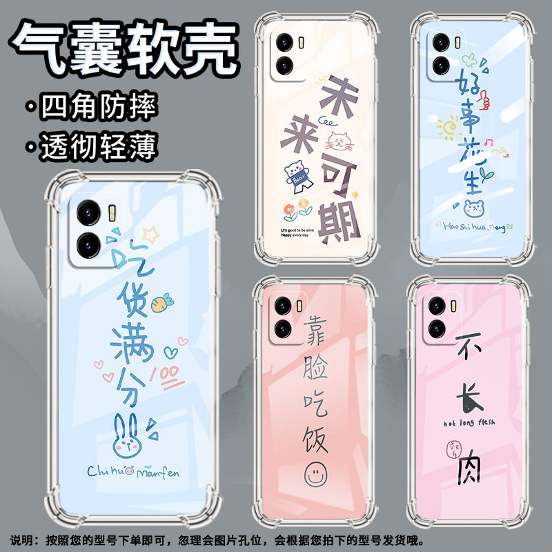 适用vivoY01手机壳vivoY12A中国风vivoY19气囊壳vivoY12吃喝玩乐vivoY18全包边防摔硅胶时尚简约保护套