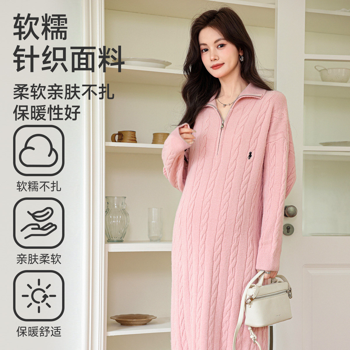 婧麒秋冬孕妇装连衣裙2025新款两穿领针织连衣裙孕期时尚高级秋装