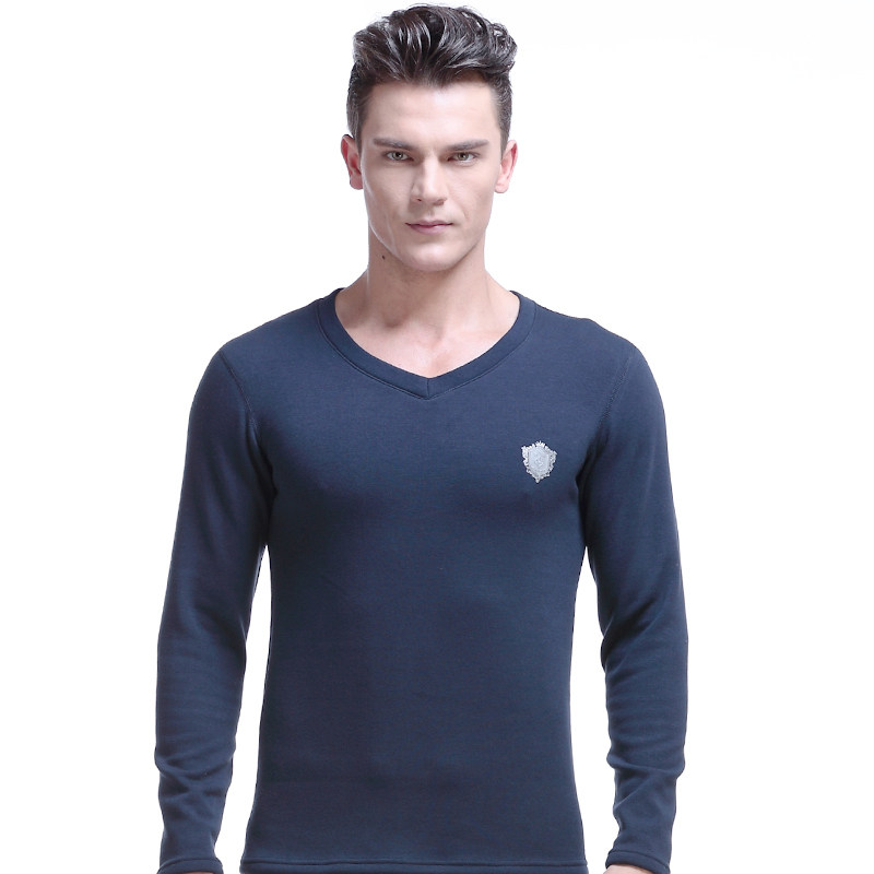 秋冬男士加厚加绒秋衣打底衫防寒内衣V领单件秋衣保暖上衣棉毛衫