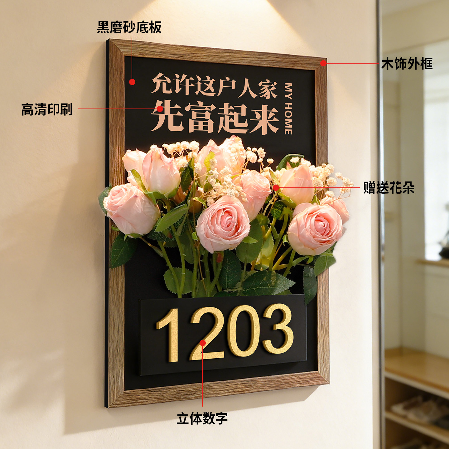 门牌号高级感轻奢创意回家仪式感入户装饰门挂婚纱店摄影馆工作室门口插花号码牌商用发光房号浪漫氛围感定制