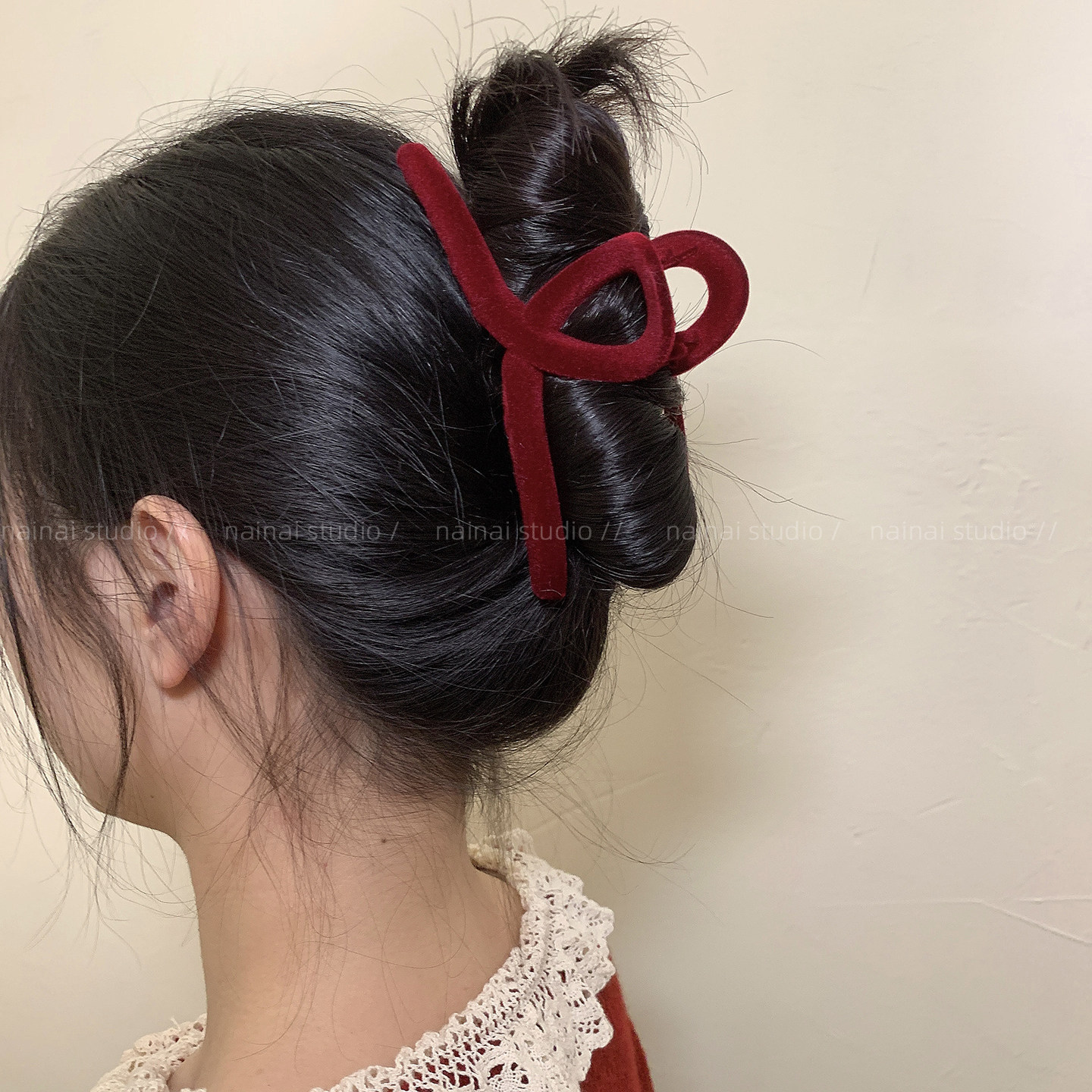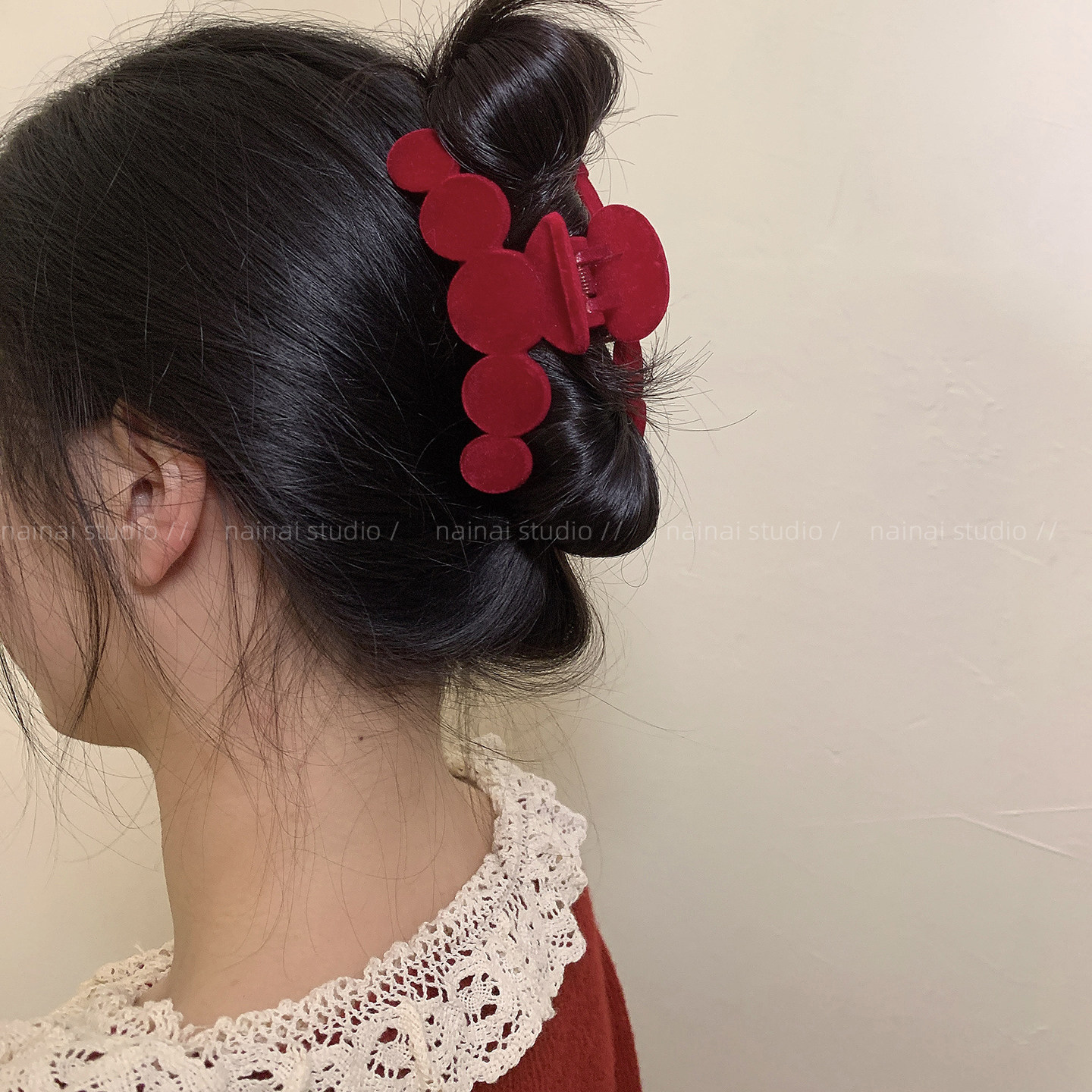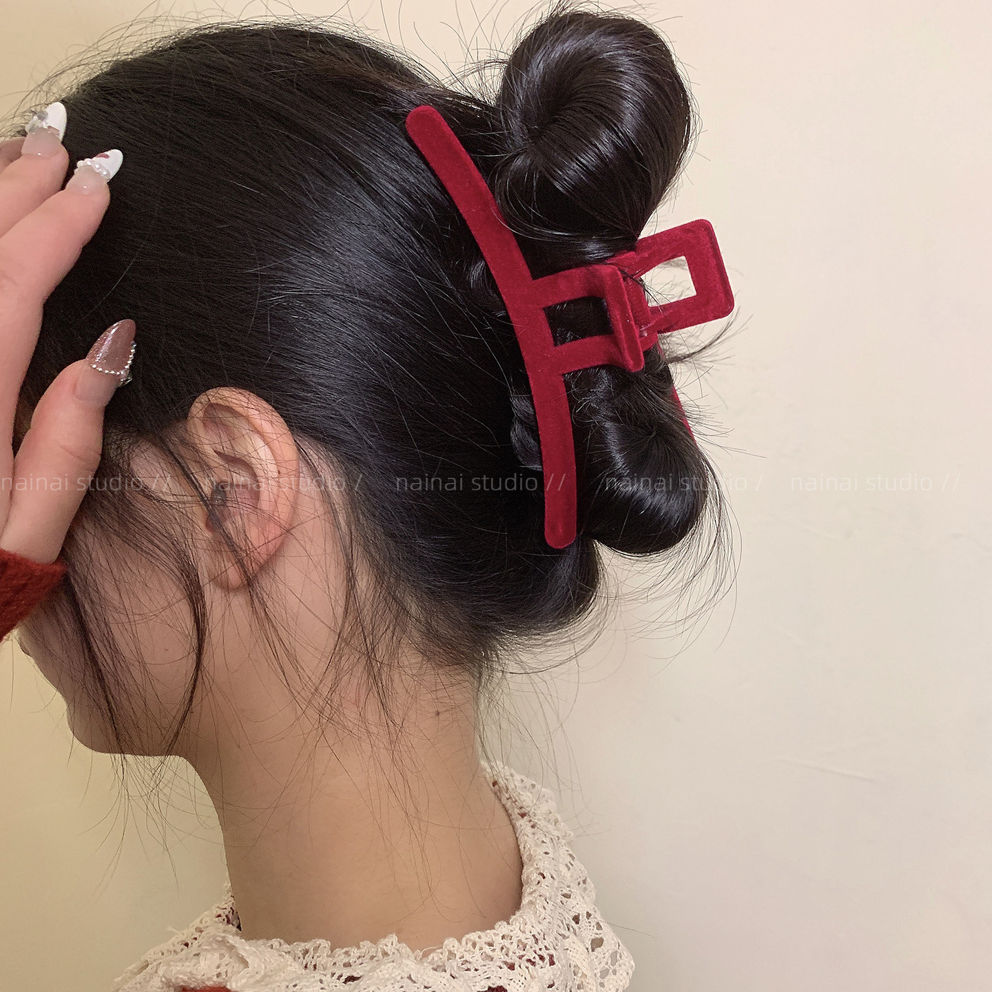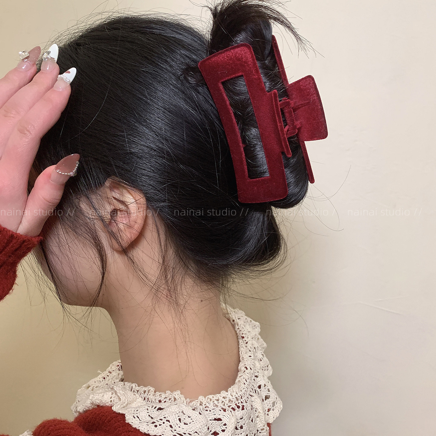 红色植绒抓夹~新年大号后脑勺盘发鲨鱼夹秋冬新款发抓发饰头饰女A