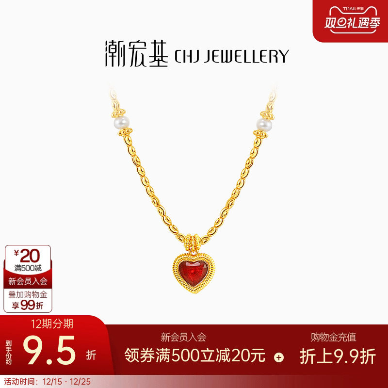 潮宏基IN+小心意黄金珍珠项链足金套链5G珐琅工艺正反双面礼物 卟