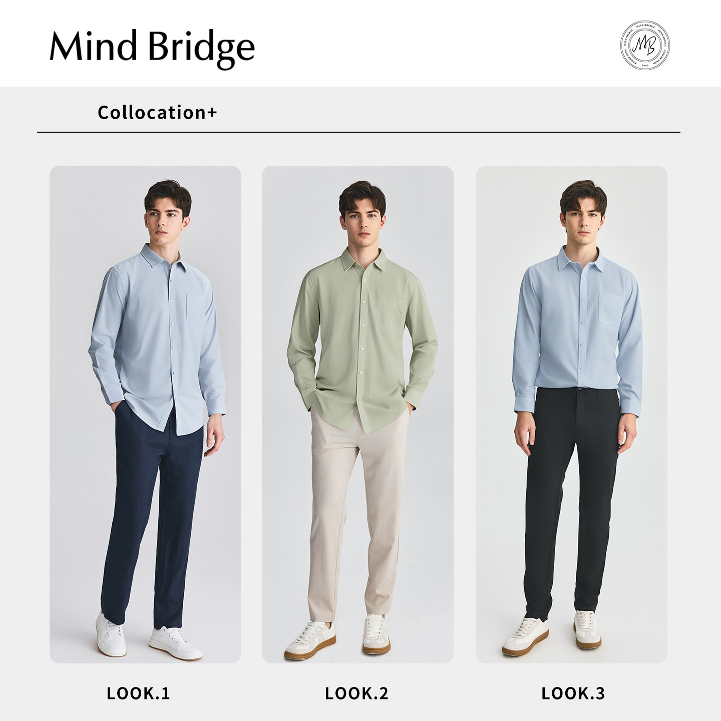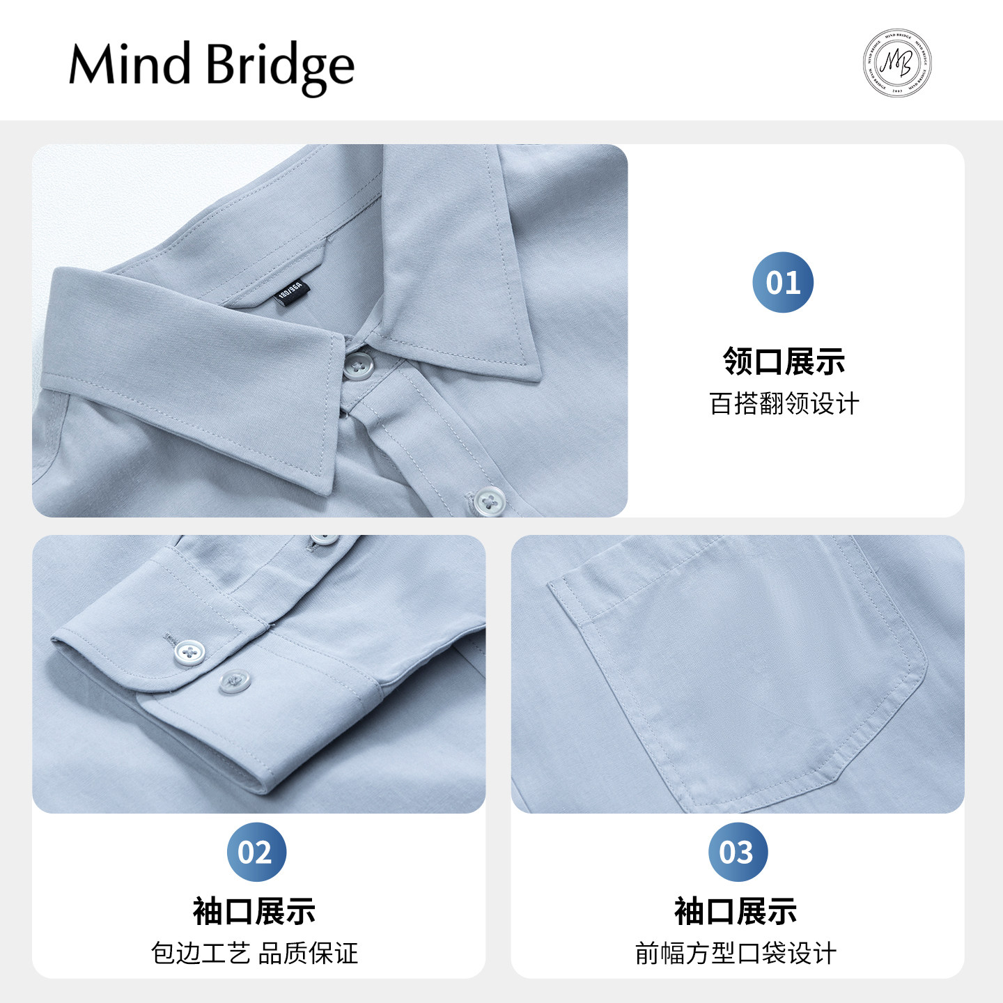 Mind Bridge【莱赛尔】2026春简约通勤衬衣男士纯色商务长袖衬衫