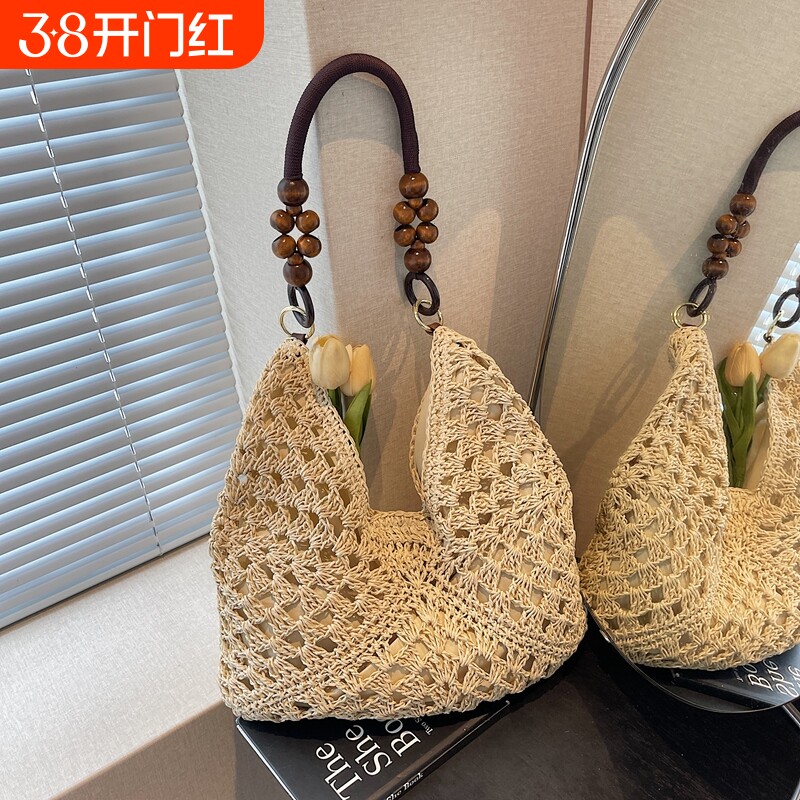夏天草编包包女2025新款海边度假沙滩镂空单肩托特包编织菜篮子包