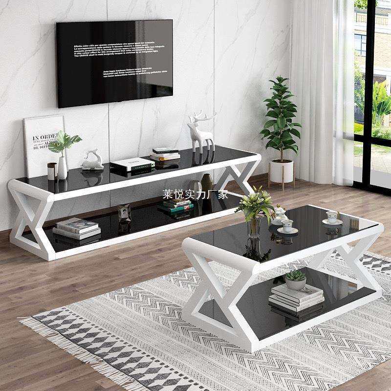 简约现代客厅电视柜钢化玻璃客厅柜茶几组合铁艺烤漆厂家厂家直销