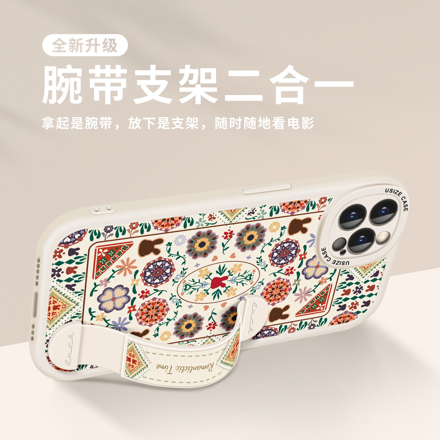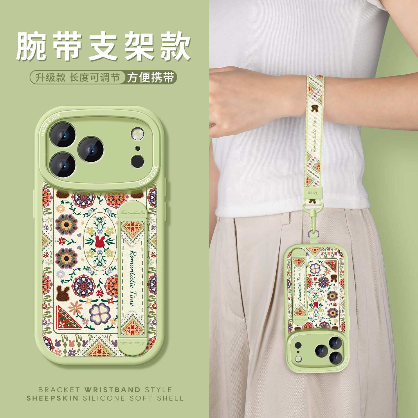 民族风适用苹果17Promax手机壳14pro新款女iPhone13全包16手绳防摔iPhone15腕带挂绳7plus斜跨6s挂脖xr背带