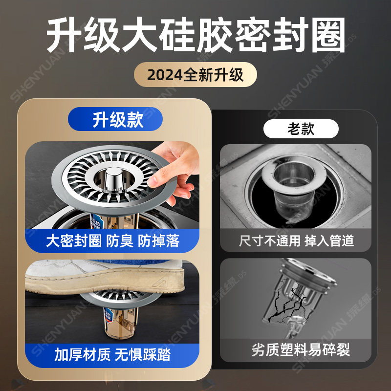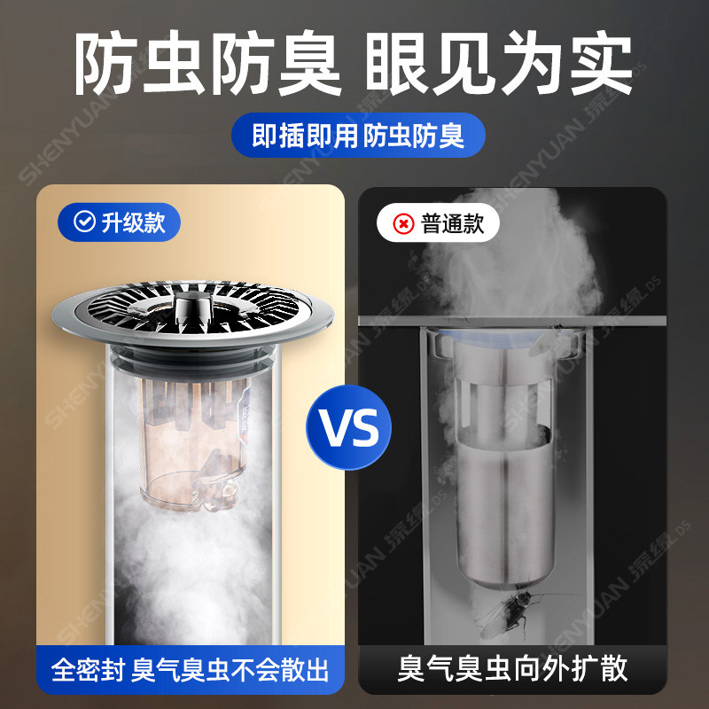 防臭地漏芯304不锈钢材质通用型浴室排水过滤网加长防虫磁吸密封