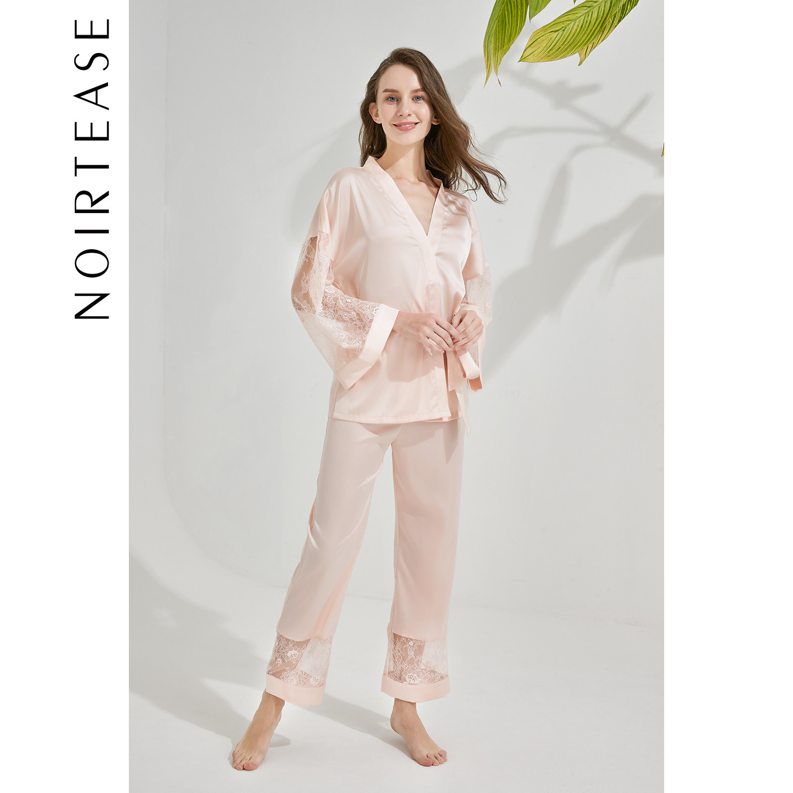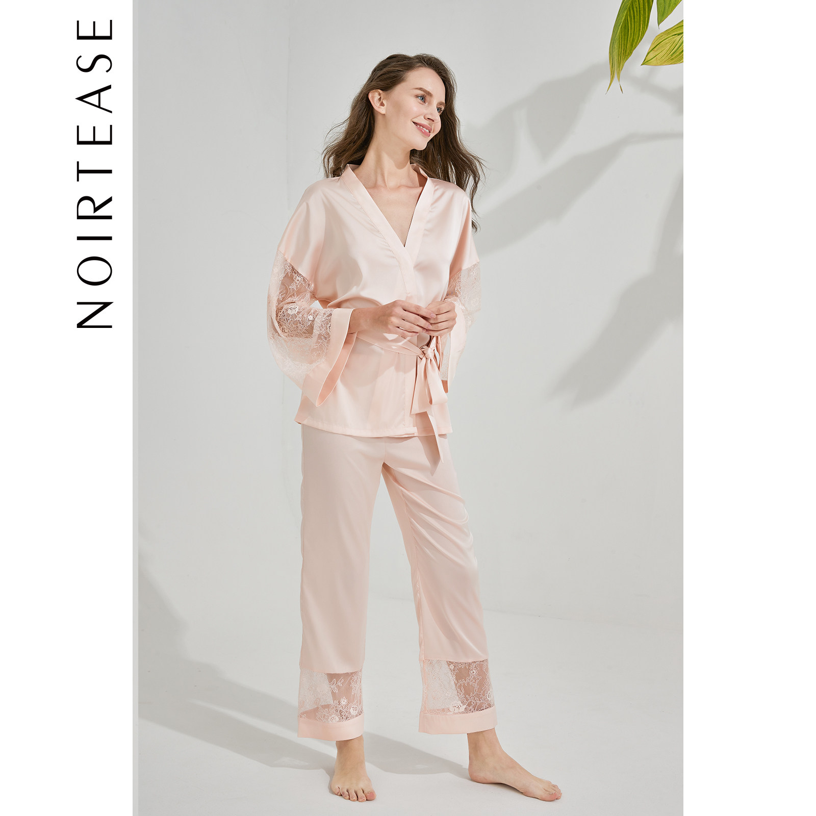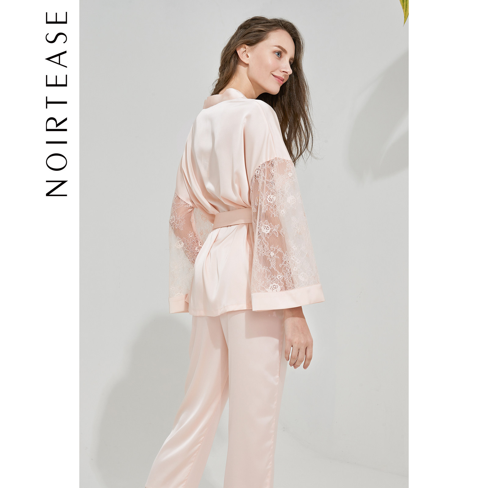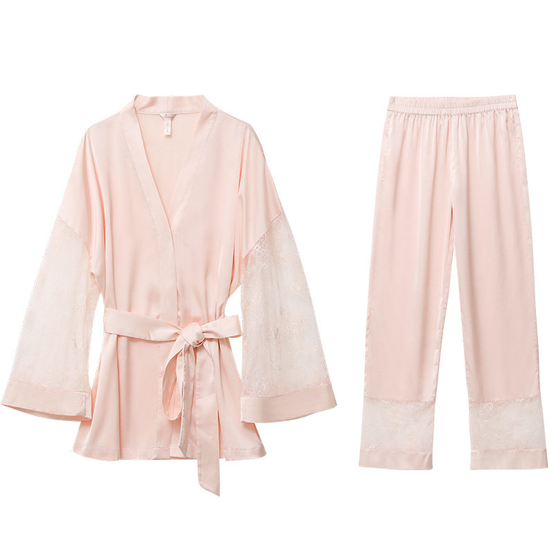 NT蕾丝水袖系带长袖大码家居服套装女士性感睡衣两件套女春夏薄款