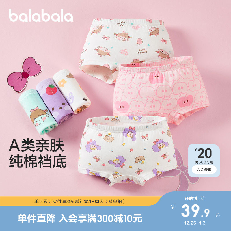 【balaOne】巴拉巴拉儿童内裤棉男童不夹pp抗菌裆四角短裤三条装