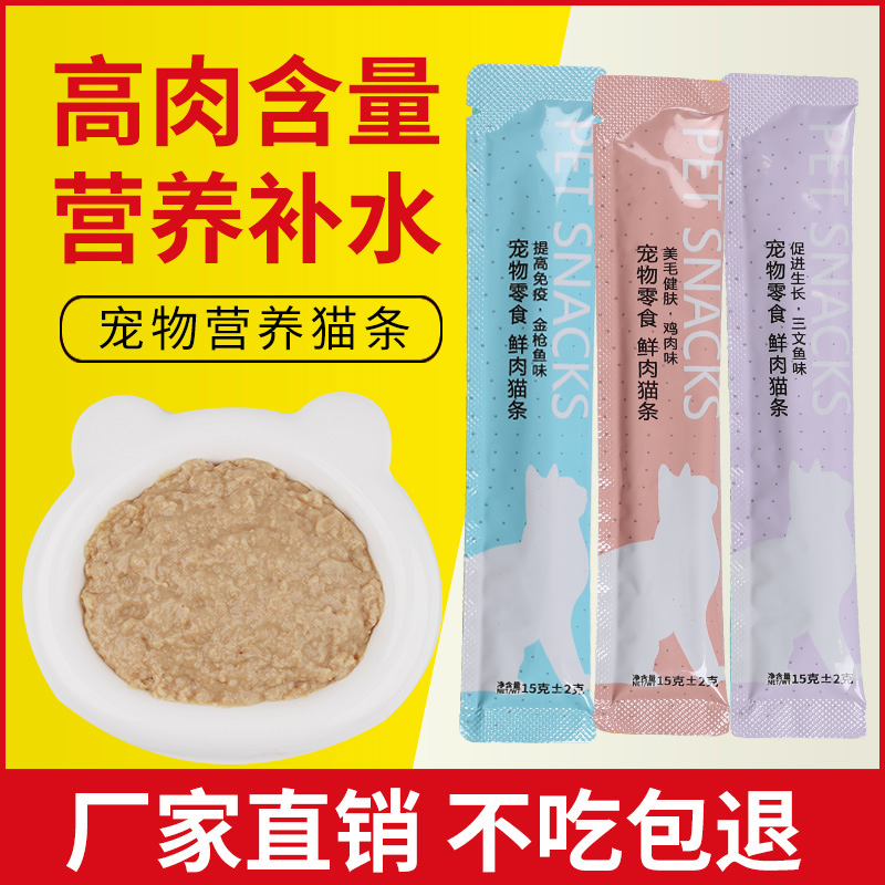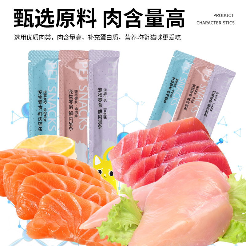 宠物猫咪零食餐包猫粮猫条幼猫专用三文鱼湿粮包猫罐头180支整箱