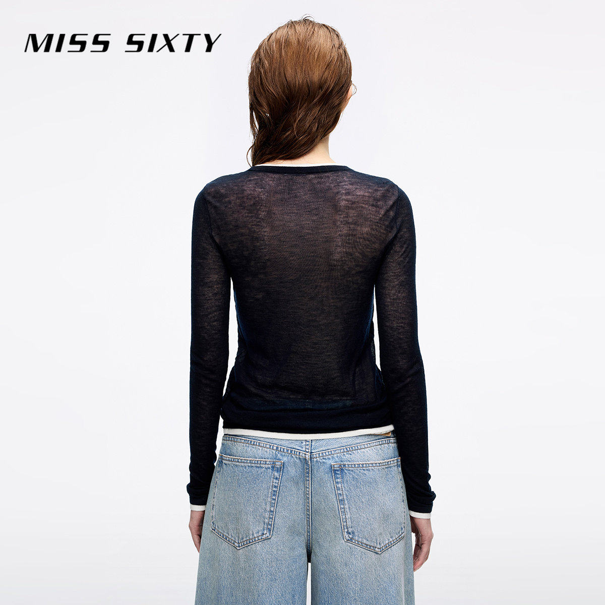 【保暖羊毛】Miss Sixty25秋新款针织衫女羊毛假两件叠穿薄款毛衣