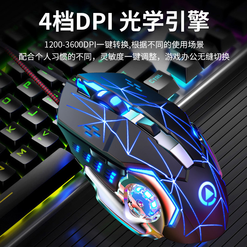 银雕机械游戏鼠标有线轻音USB网吧电竞LOL吃鸡台式笔记本办公通用