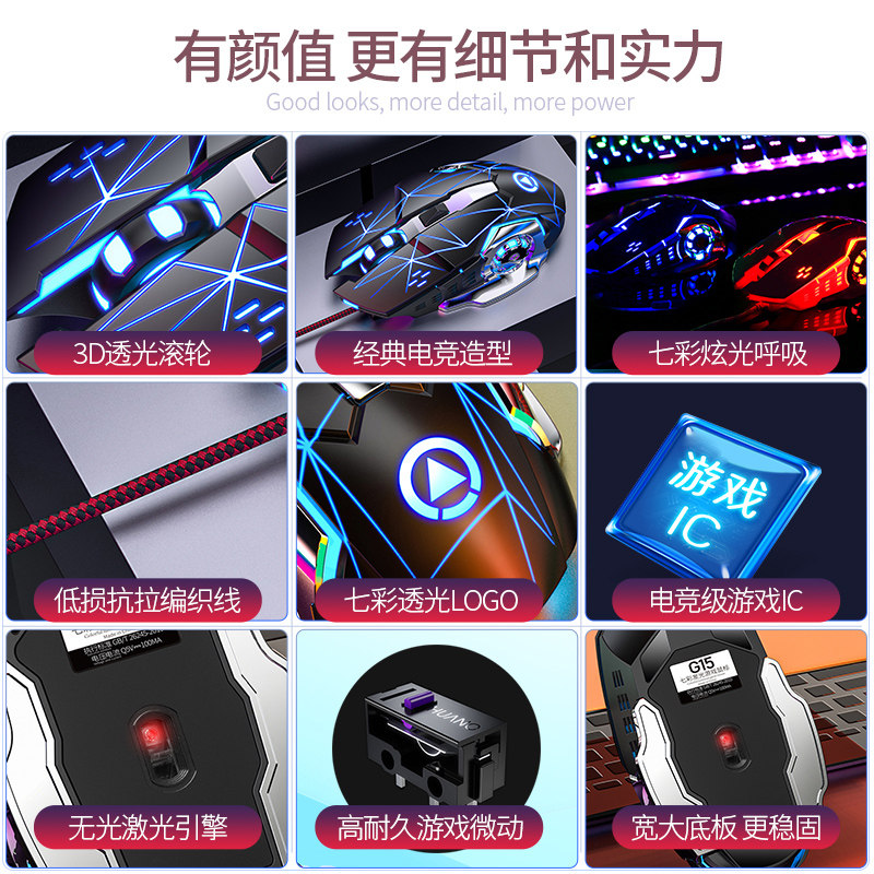 鼠标有线静音游戏电竞专用机械笔记本台式电脑usb通用办公带侧键