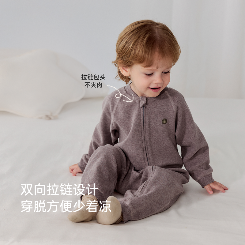 babylove婴儿连体衣秋冬季斜襟拉链哈衣爬服宝宝休闲外出居家衣服
