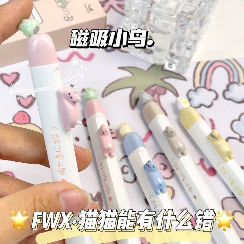凡物像猫猫磁吸小鸟中性笔ins高颜值学生考试用0.5速干刷题CS黑笔