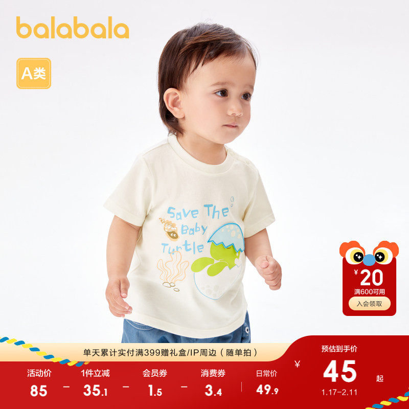巴拉巴拉婴儿t恤宝宝上衣男童衣服儿童短袖夏装趣味印花可爱萌趣