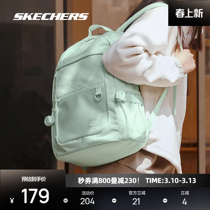 斯凯奇双肩包大容量简约旅行背包开学季百搭大学生运动休闲书包