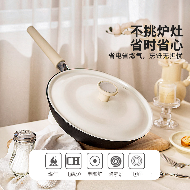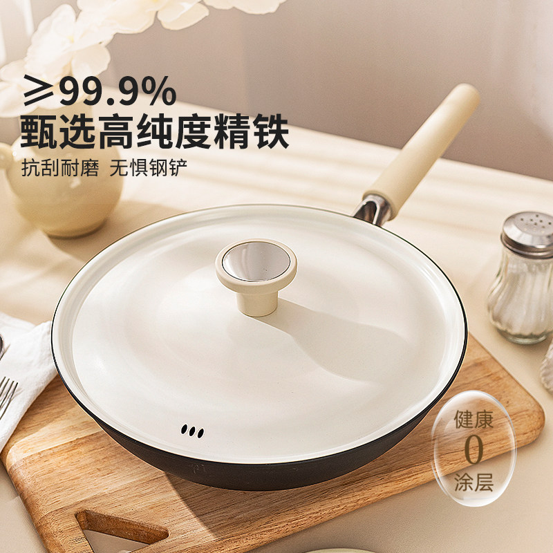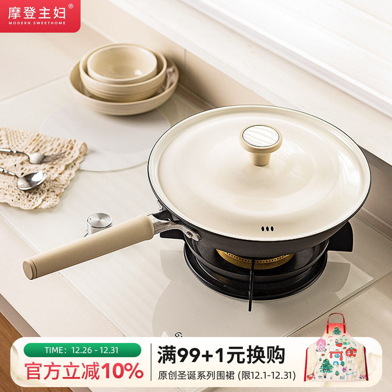 摩登主妇女士轻量铁锅炒菜锅家用电磁炉煤气灶专用无涂层不粘炒锅