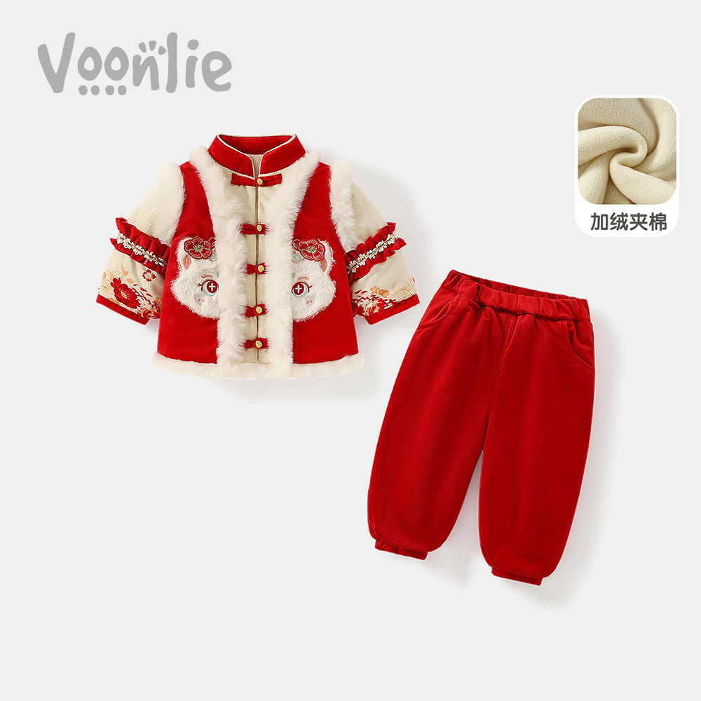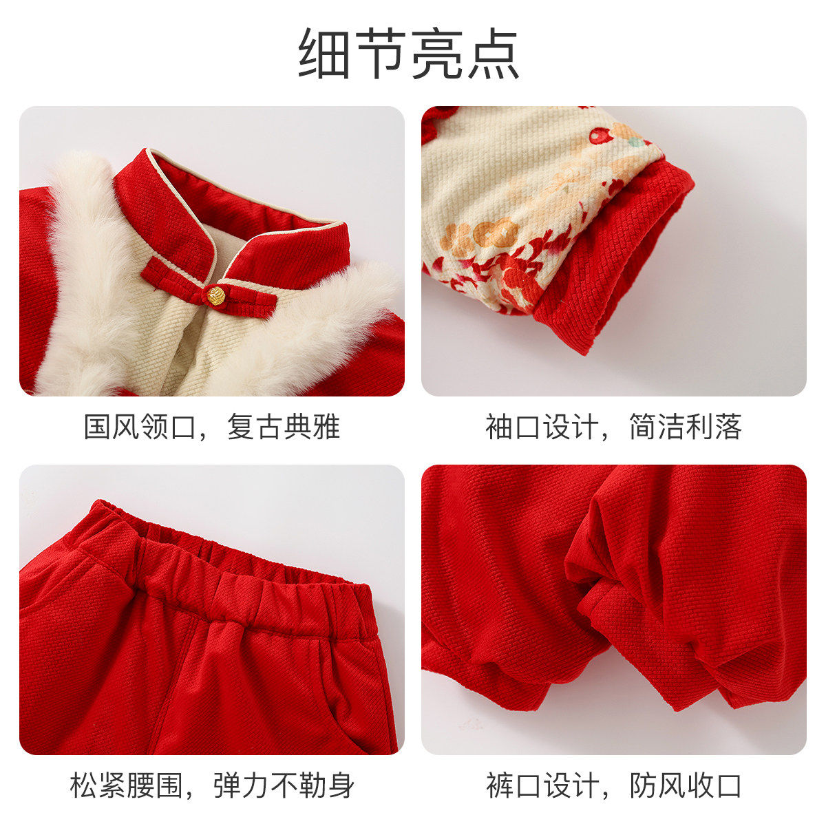 女童汉服套装冬装儿童国风唐装宝宝加绒夹棉一周岁礼服拜年服冬季