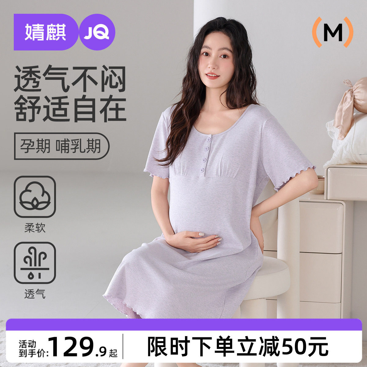 婧麒孕妇哺乳睡裙家居裙带胸垫产后喂奶孕妇连衣裙夏季薄款待产裙