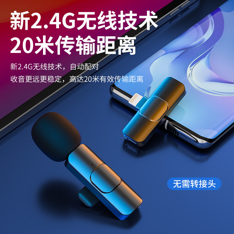 领夹式无线麦克风一拖二录音收音麦安卓苹果手机直播降噪抖音户外