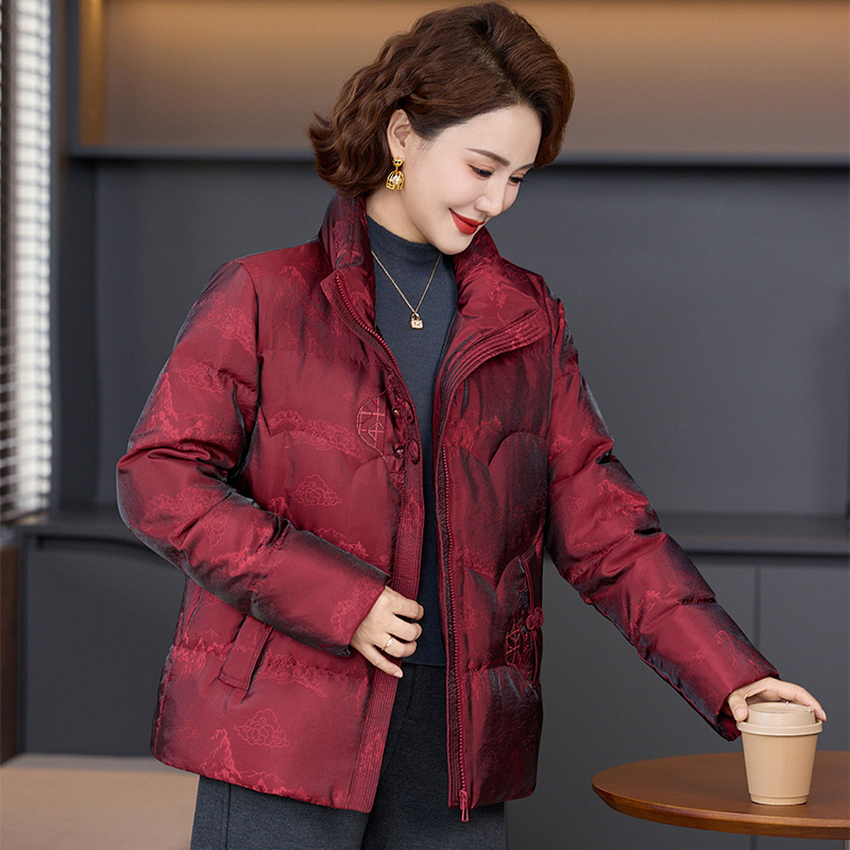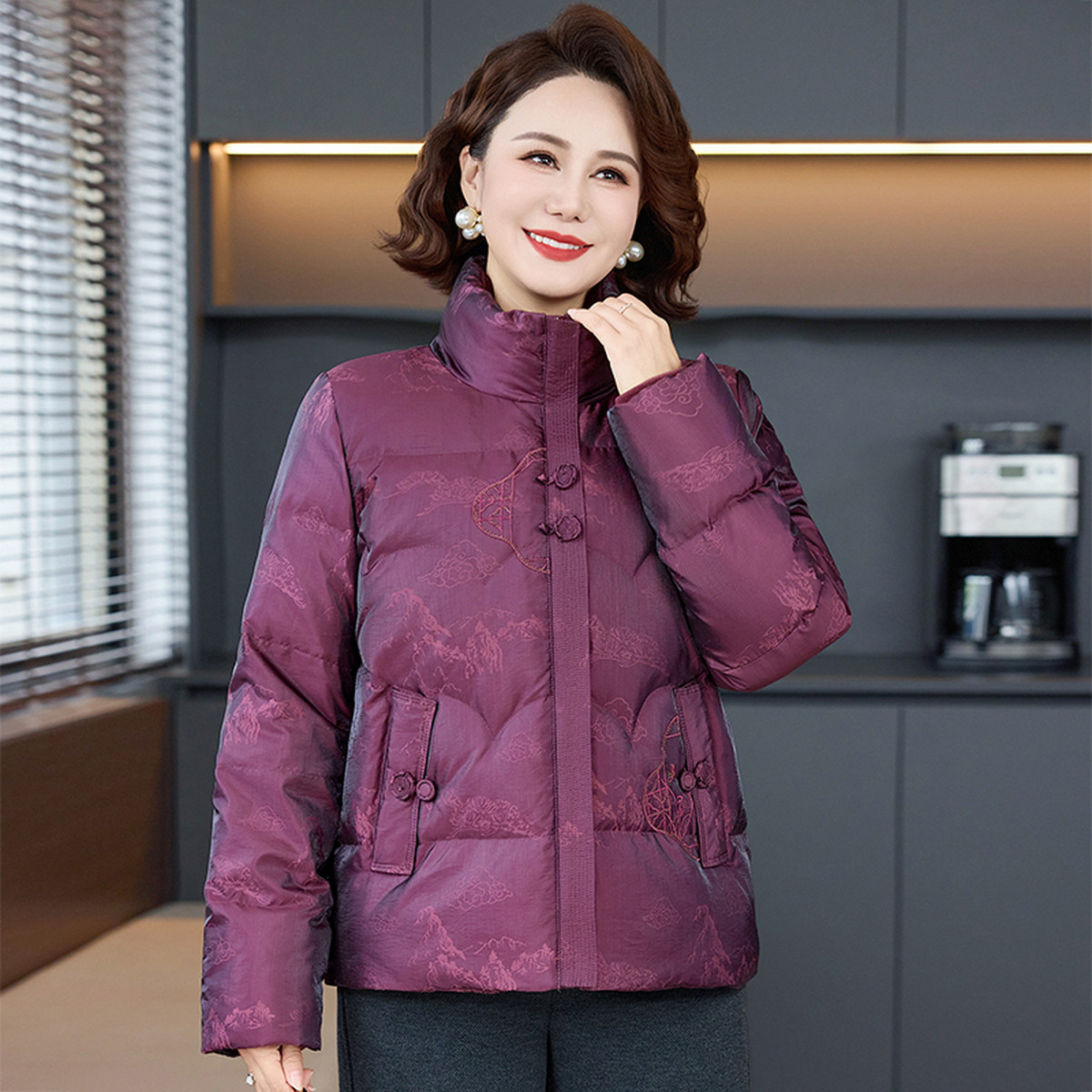雪中飞2026春新款女士暗花刺绣短款羽绒服时尚新中式精致中老年