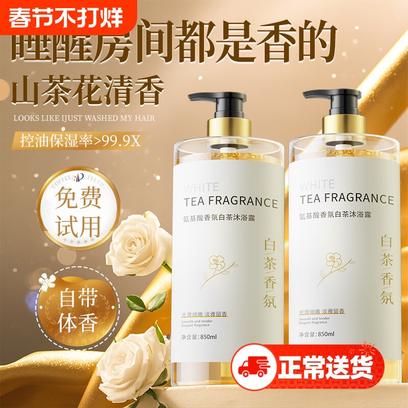 香氛沐浴露持久留香72小时香水乳洗浴套装山茶花氨基酸洗发水白茶
