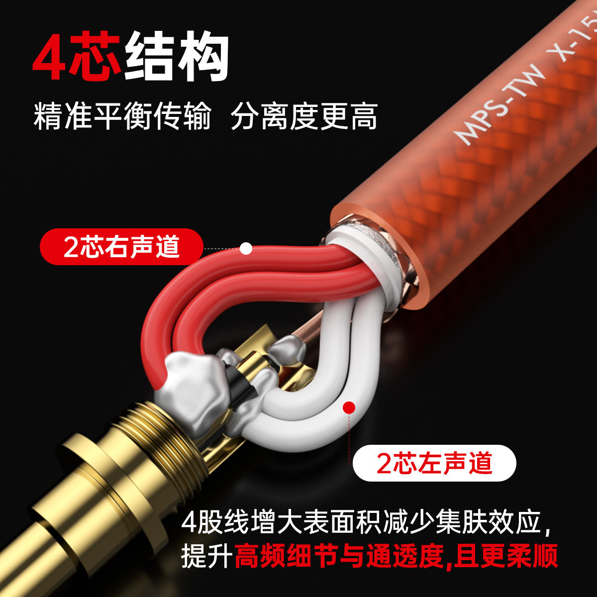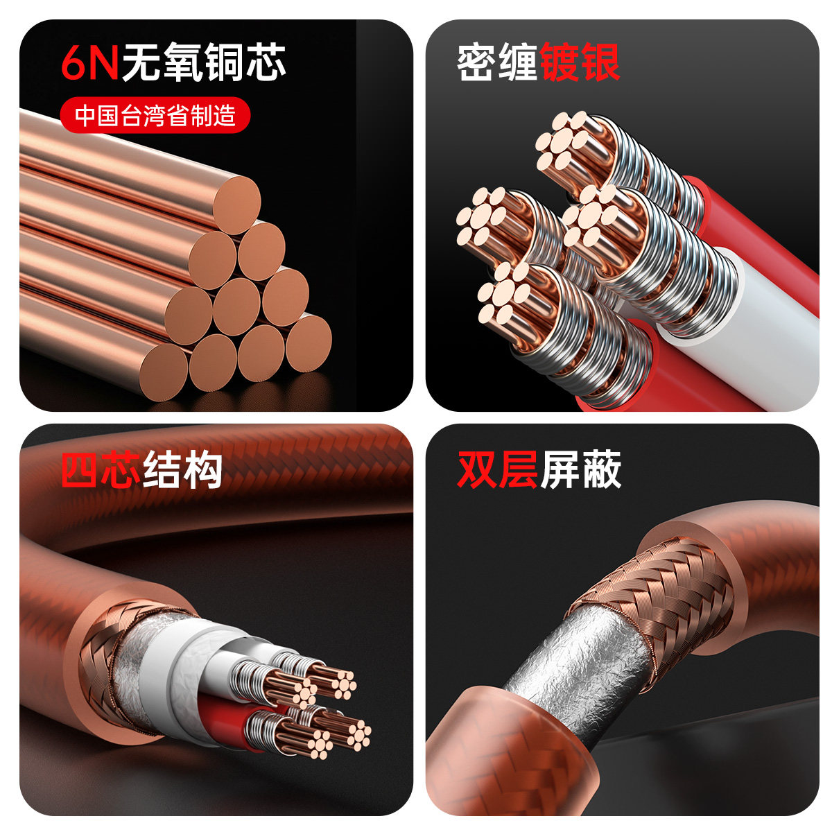 6N无氧铜镀银 四芯密缠结构 双层高效屏蔽