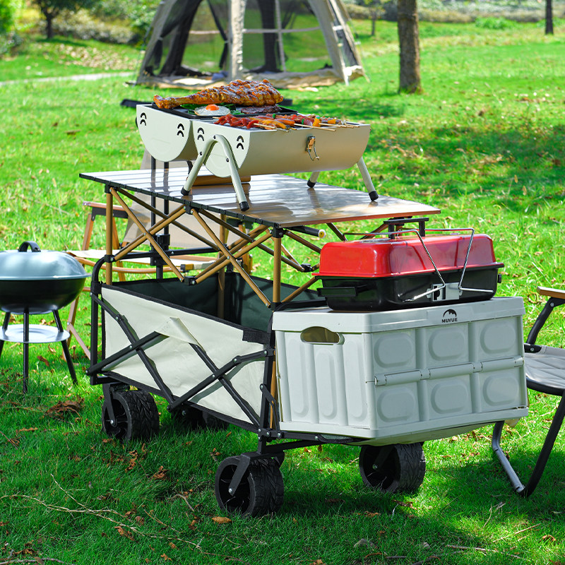 歌秀丹露营推车营地拖车户外折叠超大野营手拉车小推车野餐车桌板