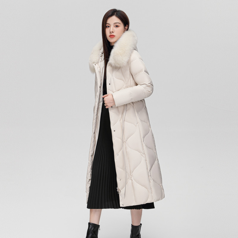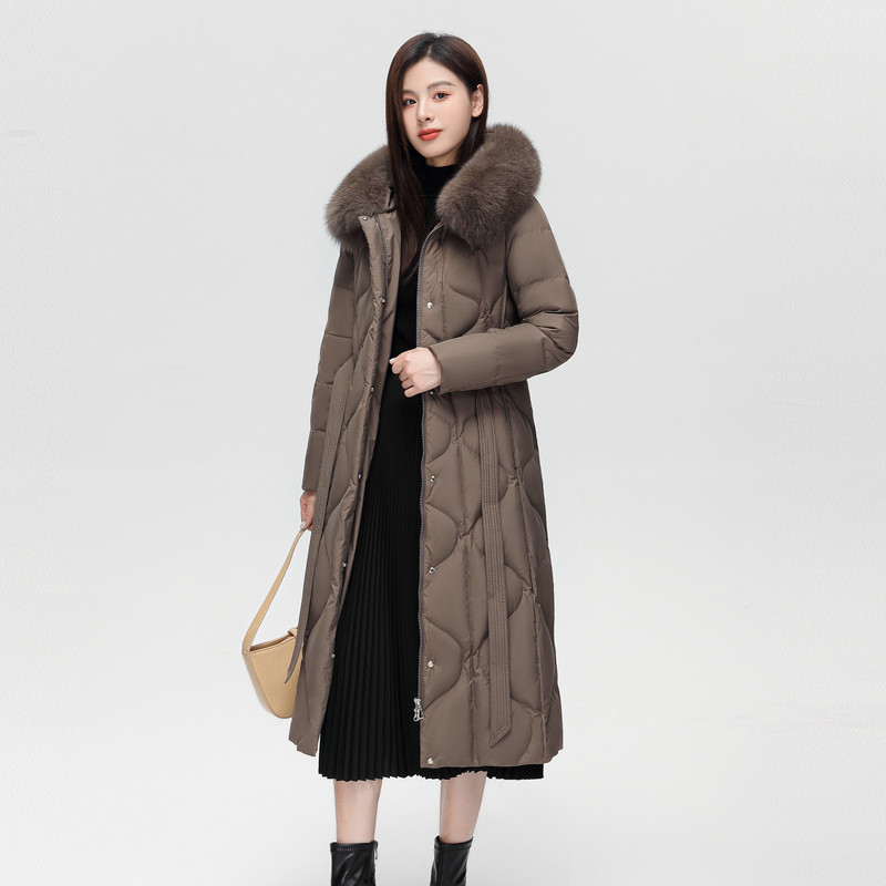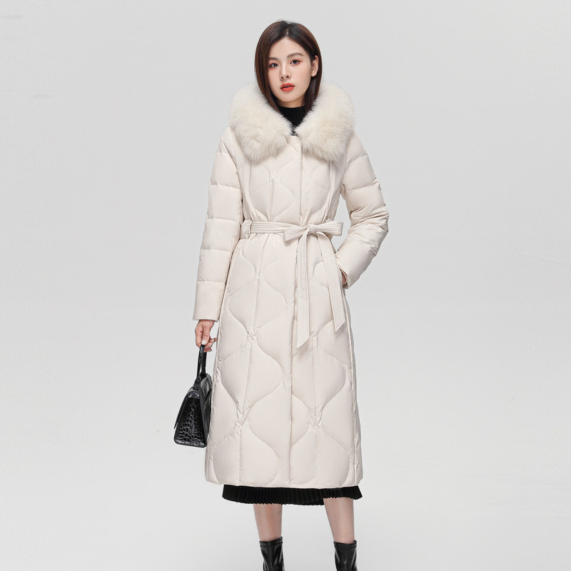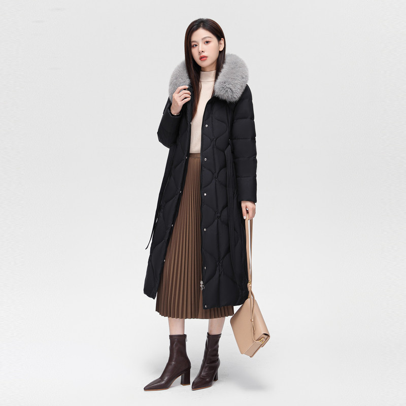 雪中飞2025冬新款超长款羽绒服女冬气质系带狐狸毛领连帽保暖