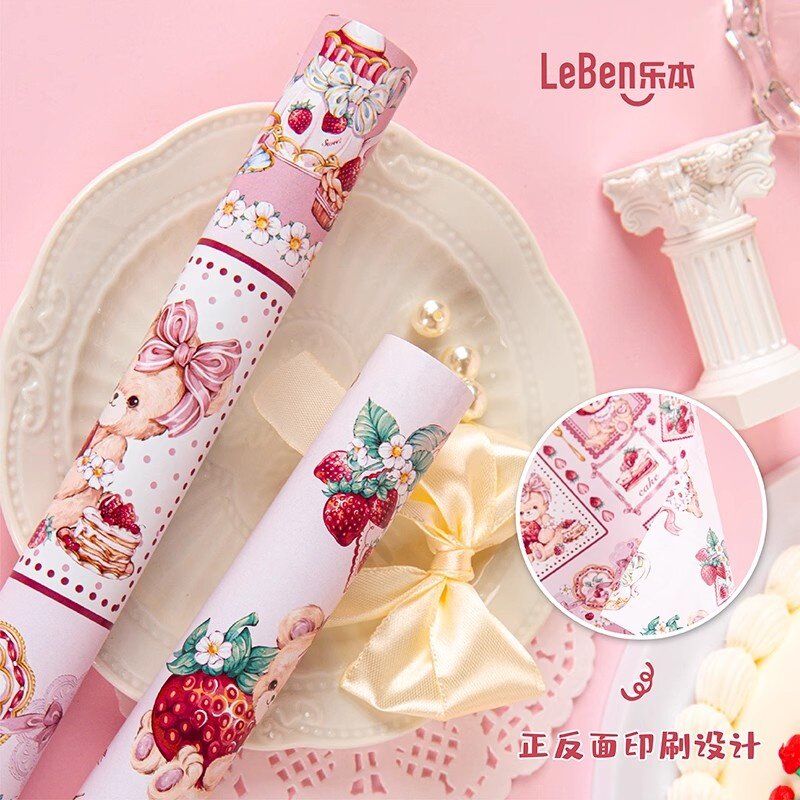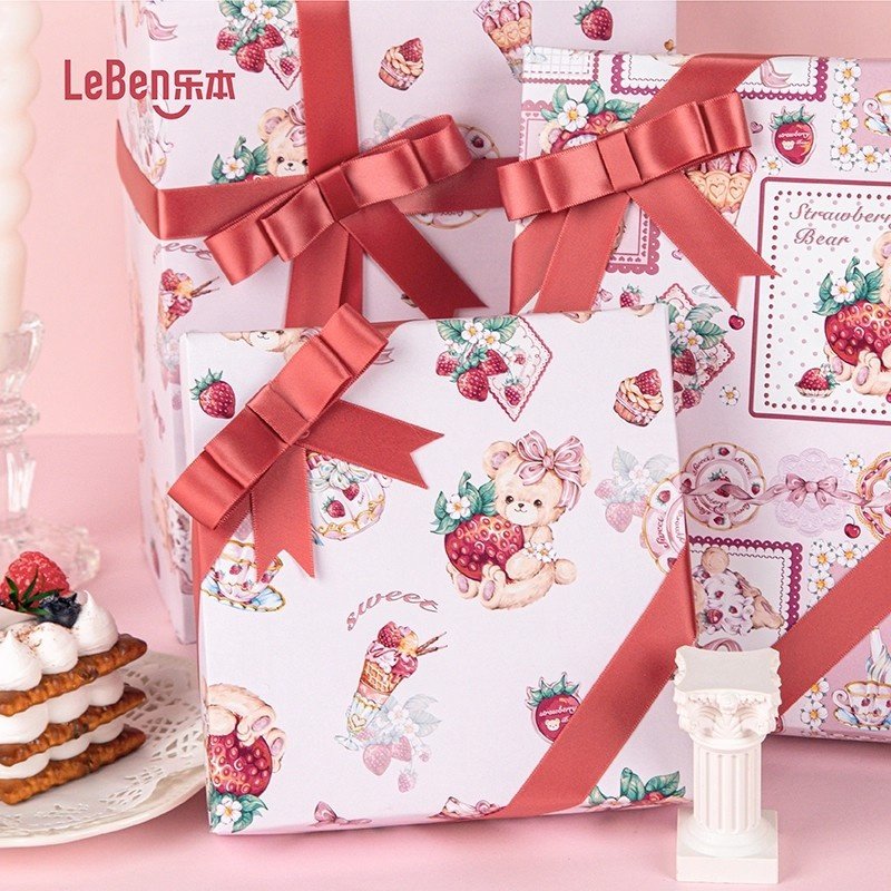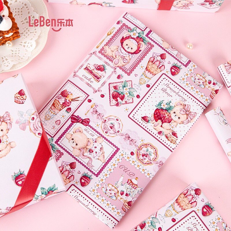 乐本·草莓熊熊原创包装纸礼物礼品纸包书皮纸防水高级感生日礼盒包装材料大尺寸儿童素材纸花束打包纸装饰纸