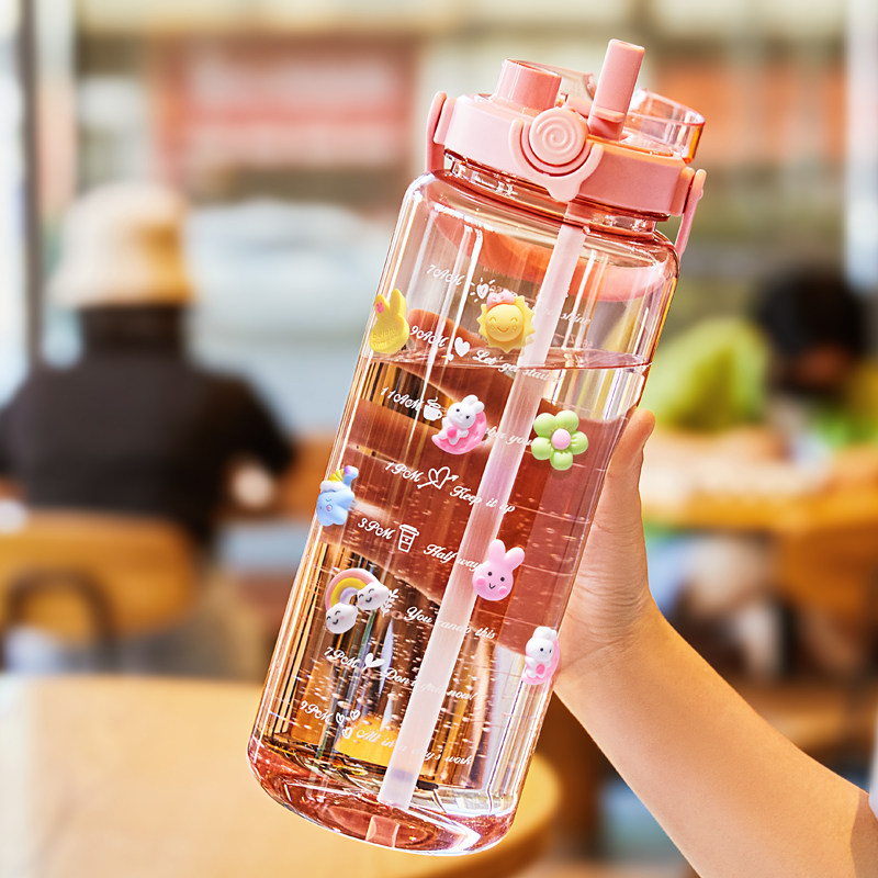 高颜值大容量水杯夏季运动提手塑料杯耐高温水瓶儿童学生双饮水壶