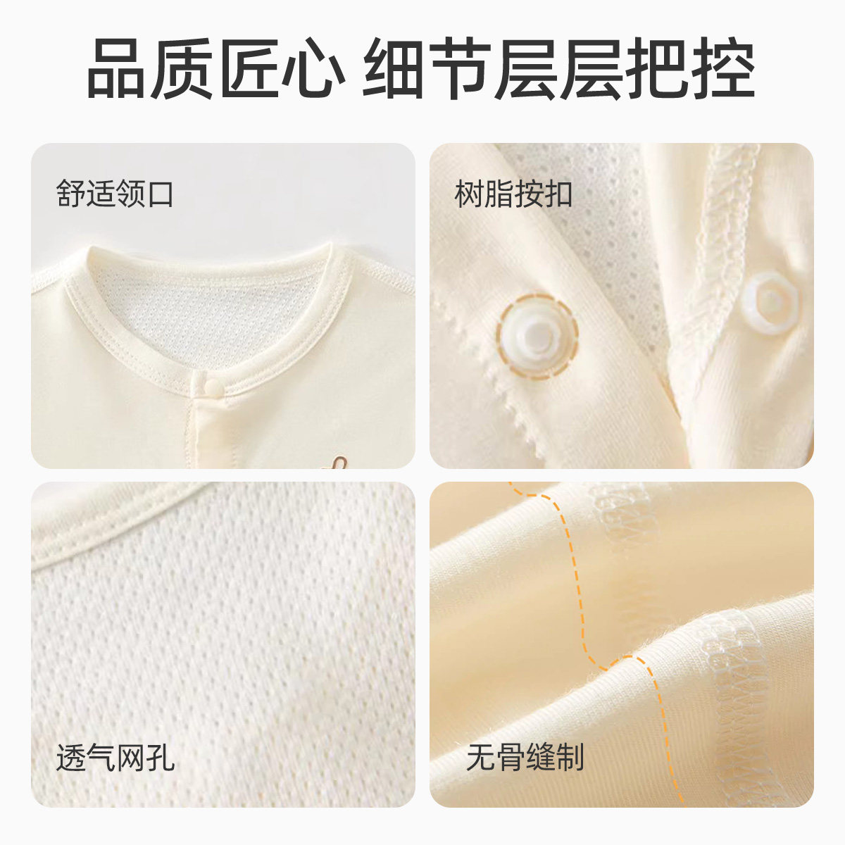 婧麒夏季薄款婴儿衣服莫代尔婴幼儿连体衣单排扣短袖男女宝宝爬服