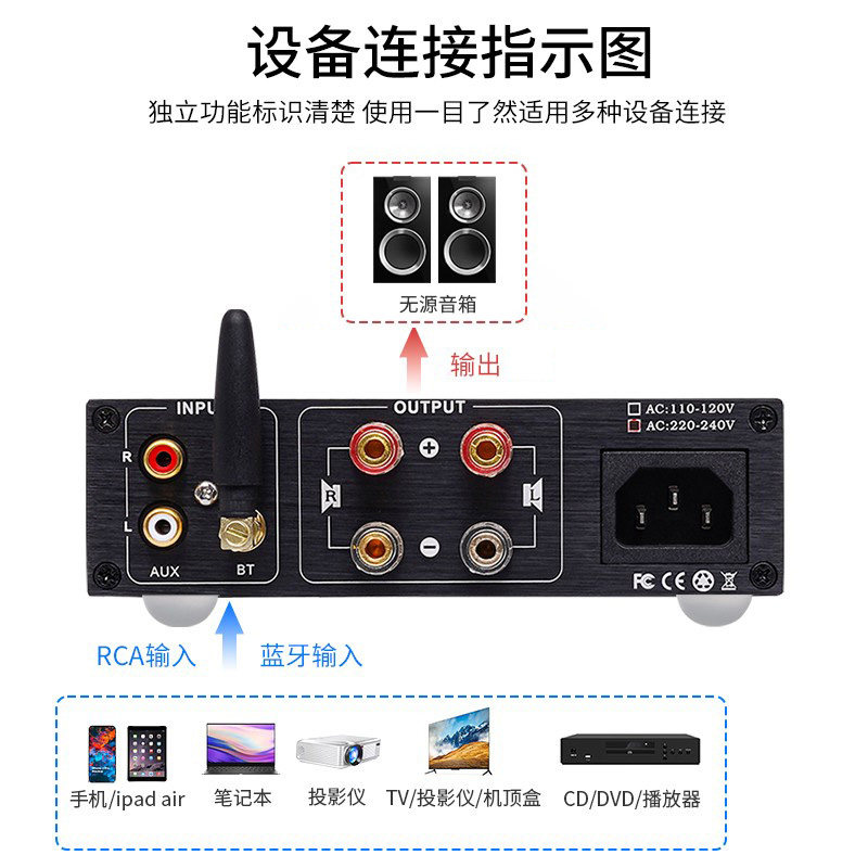 伟良音响BRZHIFI家用数字功放DP8立体声高保真桌面发烧及蓝牙5.3