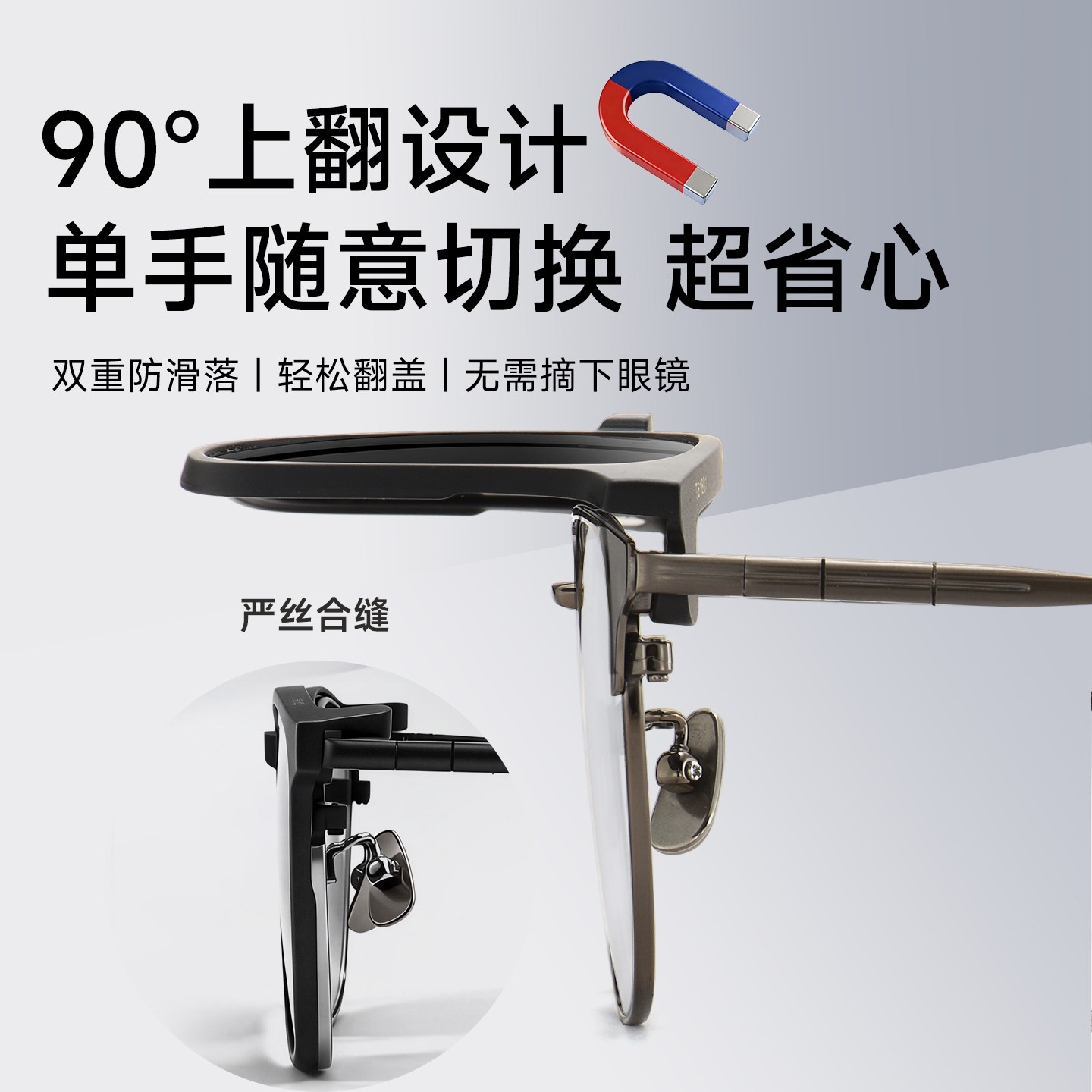 菲尔渡边翻盖磁吸眼镜男近视偏光墨镜套镜开车夜视夹片钛架61801