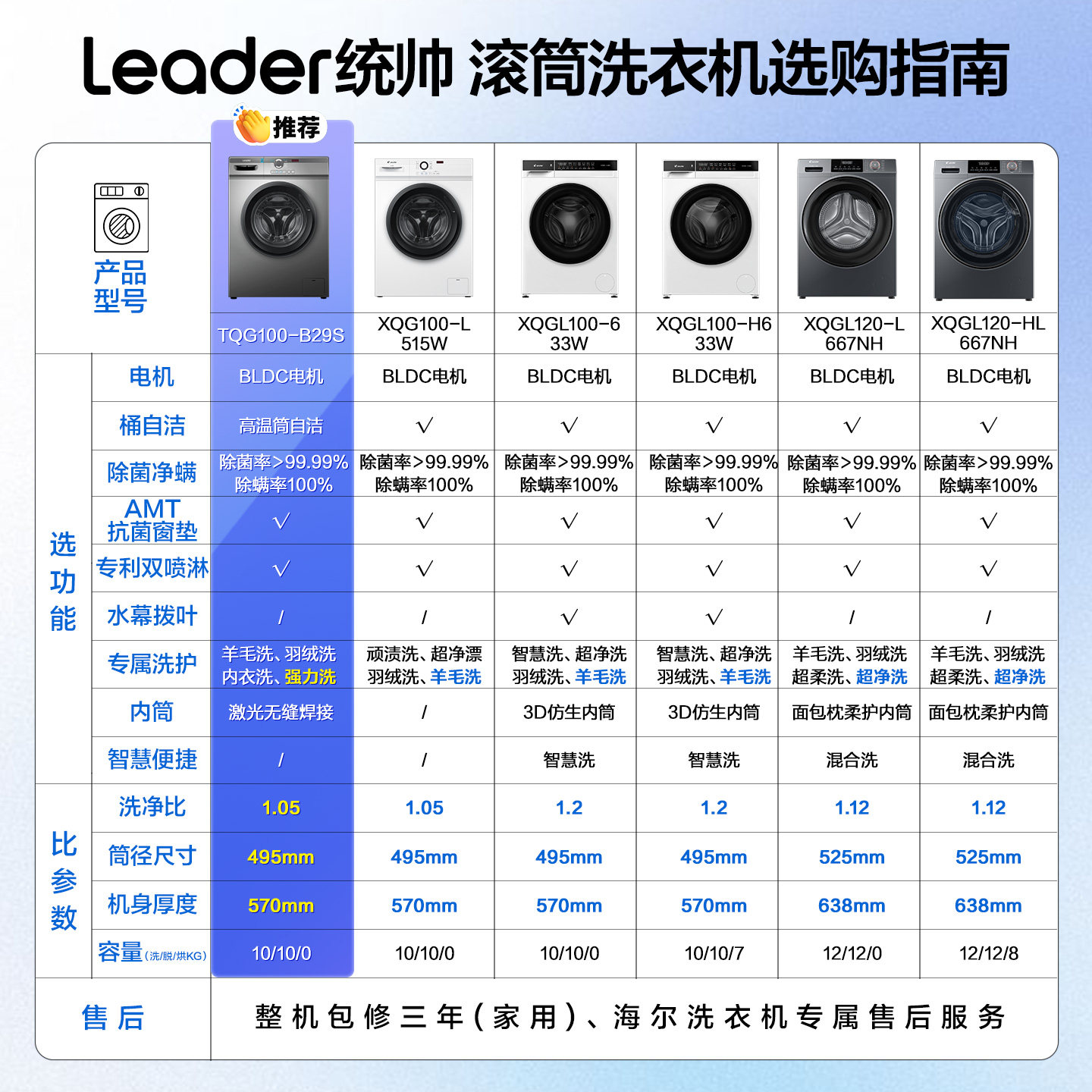 海尔出品统帅10/12kg滚筒洗衣机全自动家用洗烘一体大容量515/667