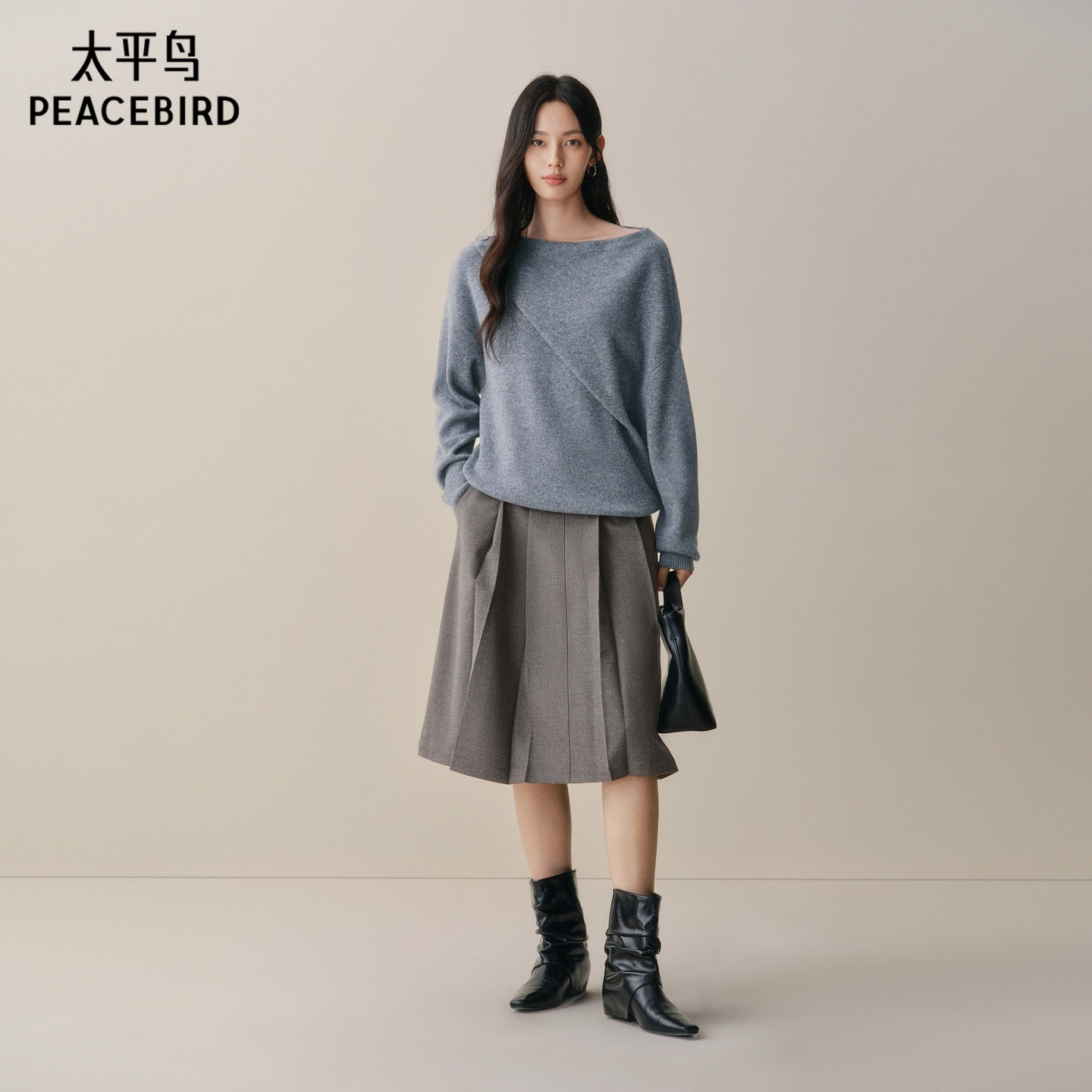 【商场同款】太平鸟25冬季新款全羊毛异形领时尚针织衫A3EEF4A08