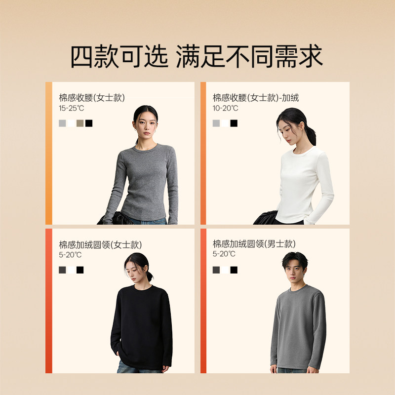 蕉内热皮501+肌底衣方领保暖内衣秋衣打底衫女内搭t恤秋冬