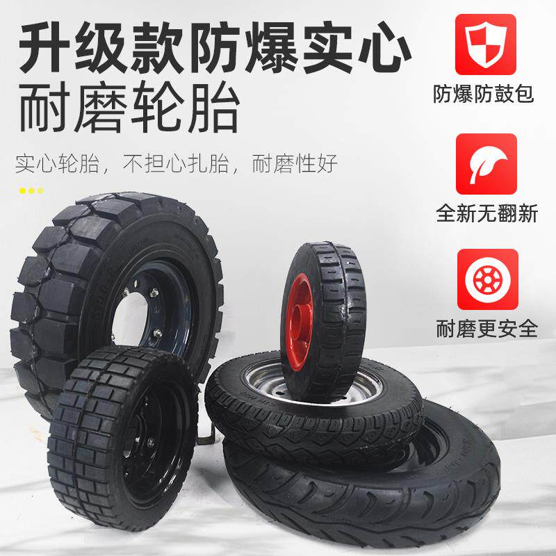 适用电动三轮车300-8/400-12/350-10/400-8防扎免充气后实心轮胎