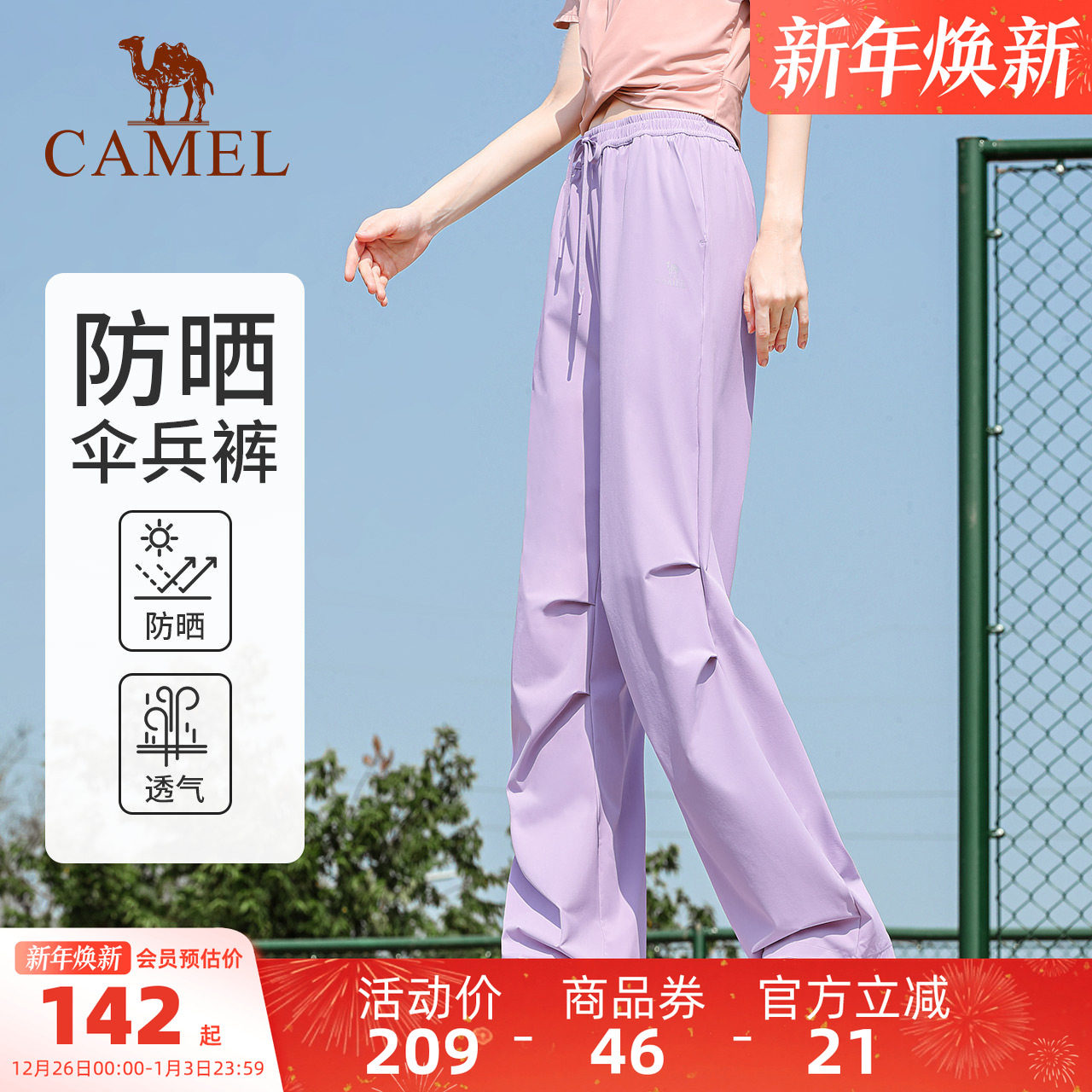 骆驼伞兵裤夏季女防晒透气休闲裤快干直筒冲锋裤宽松登山运动长裤