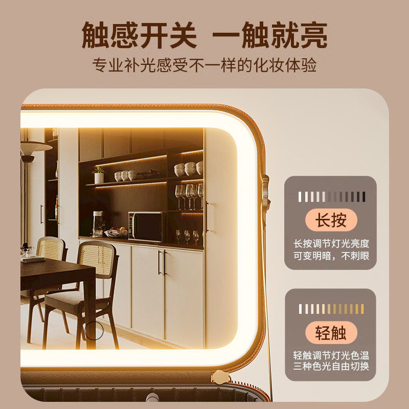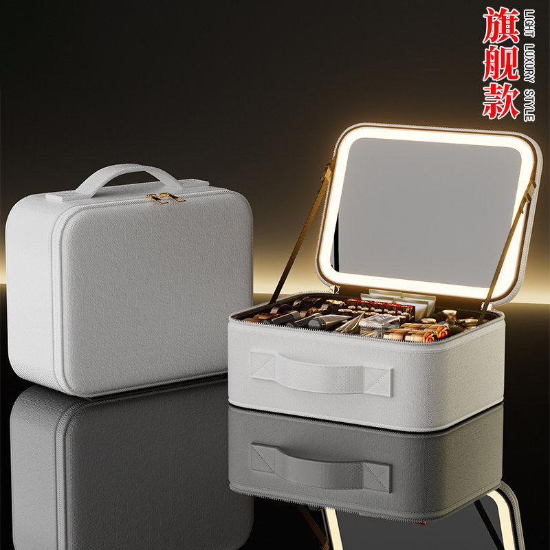 高级化妆包女LED补光带镜子化妆箱便携式大容量可拆卸收纳箱分区