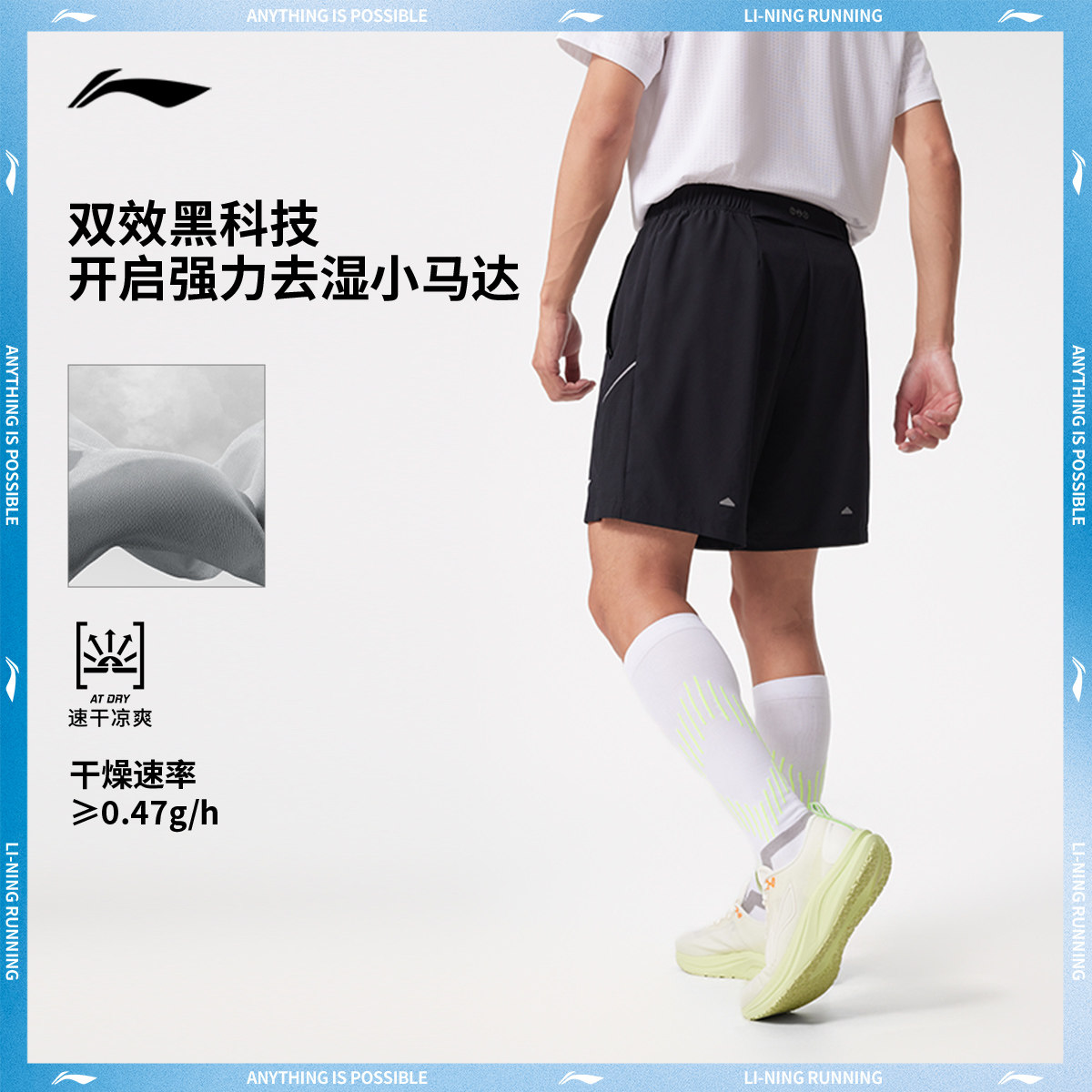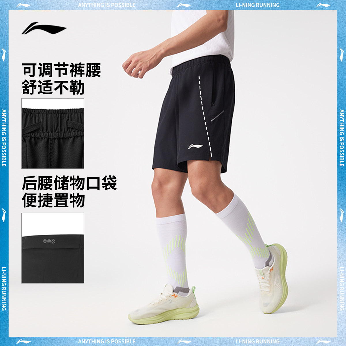 李宁专业跑步系列运动短裤男士2025新款凉爽夏季反光梭织运动裤