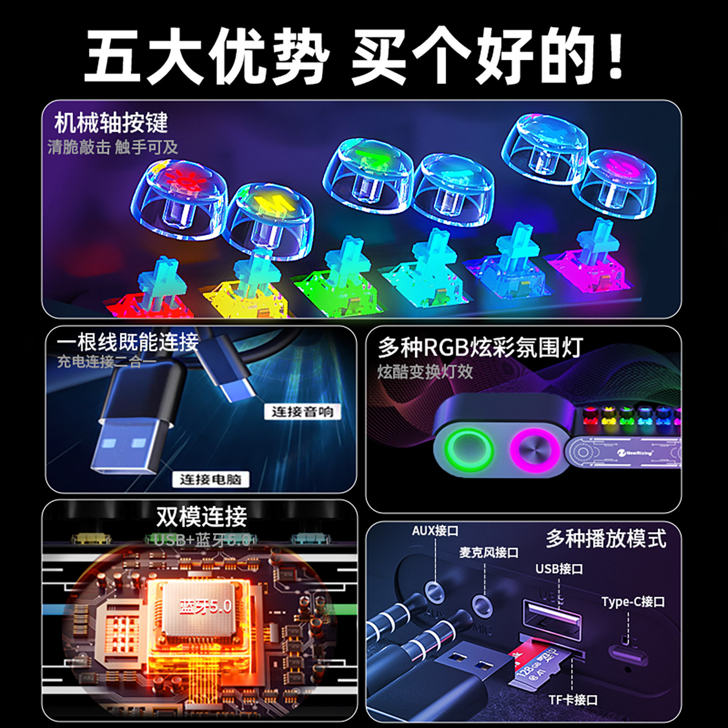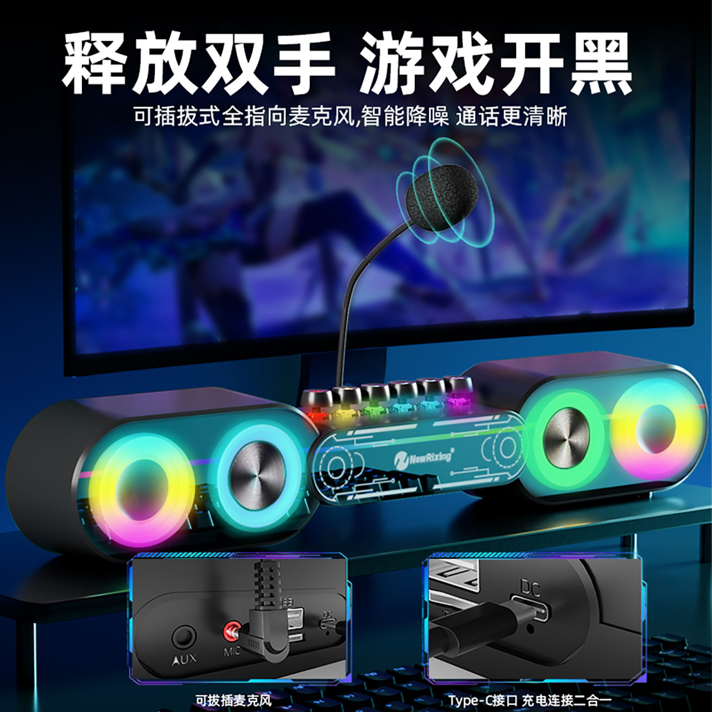 无线蓝牙音箱电脑笔记本桌面台式家用高音质低音炮氛围灯游戏音响