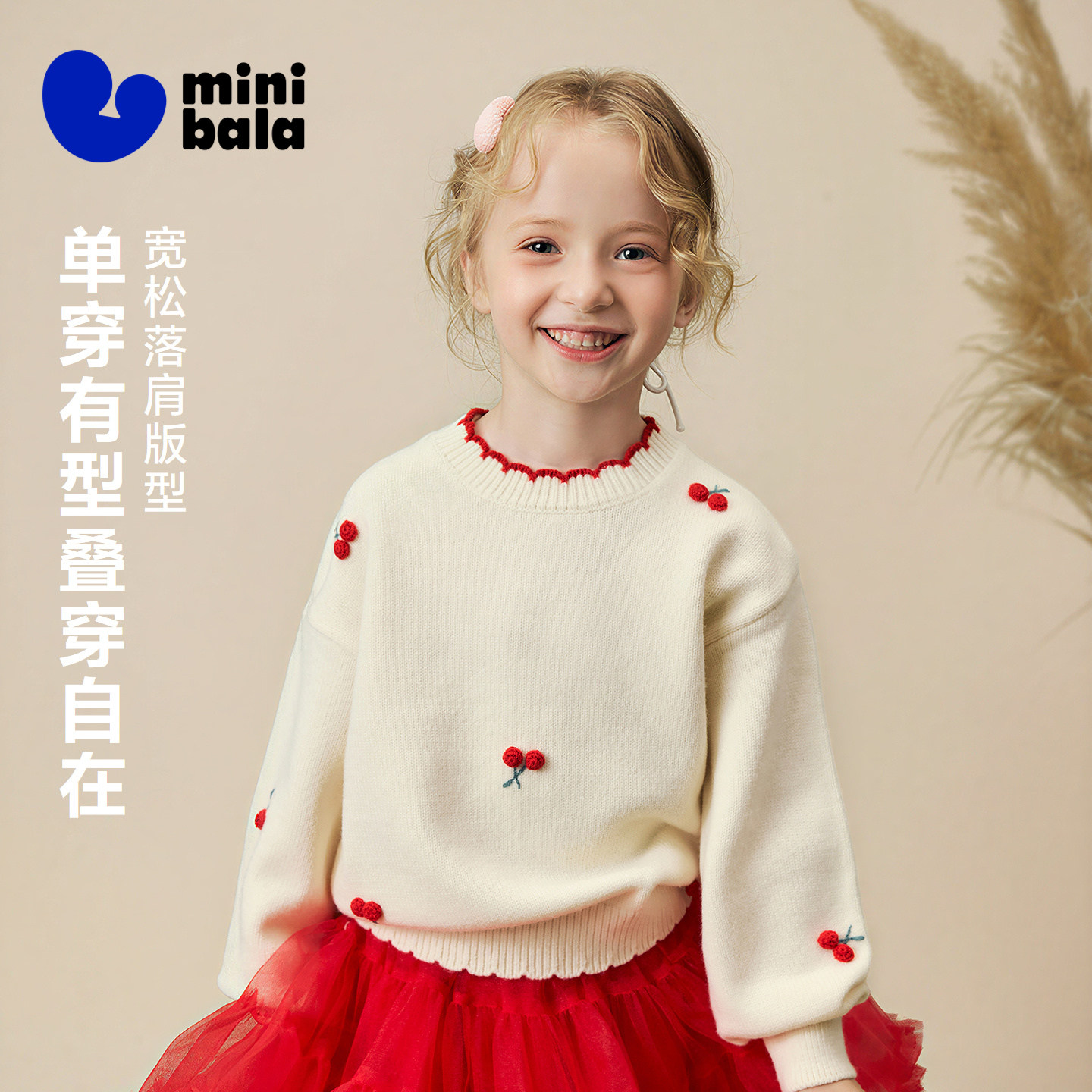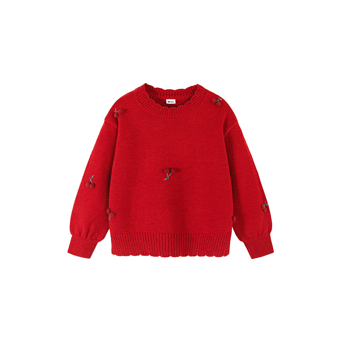 迷你巴拉女童儿童毛衣冬柔软亲肤甜美新年红色樱桃拜年服马年上衣