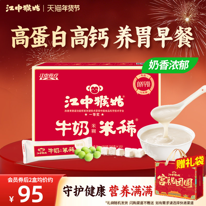 江中猴姑米稀牛奶米糊15天养胃猴头菇高蛋白高钙营养早餐送礼食疗
