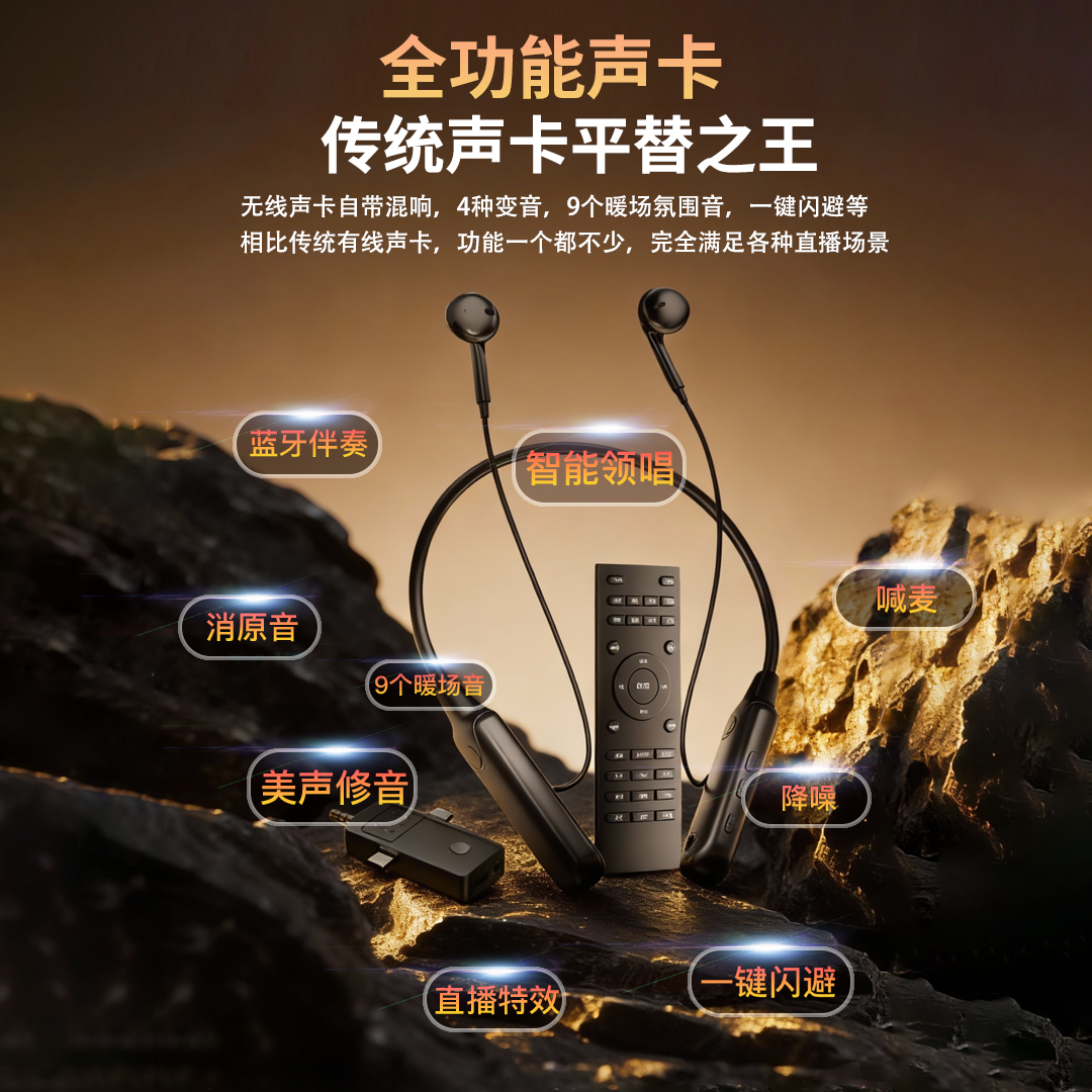 直播声卡一体耳机无线挂脖直播声卡耳机话筒网红主播直播K歌蓝牙