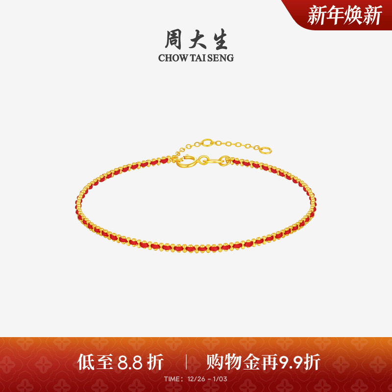 周大生18K金手链编织手绳素链新年红绳本命年送女友新年礼物