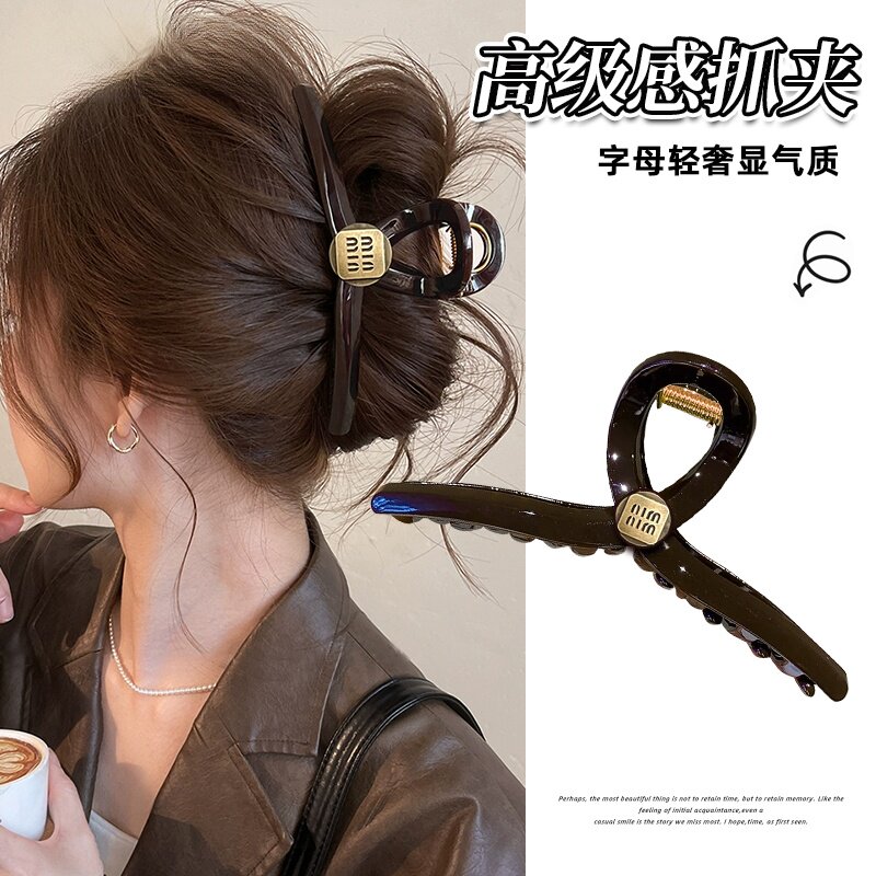 简约金标抓夹鲨鱼夹女高级感2026新款大号发量多气质后脑勺盘发夹