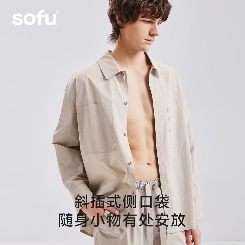 sofu纯棉睡衣套装女春秋长袖长裤家居服100%全棉慵懒松弛感居家服